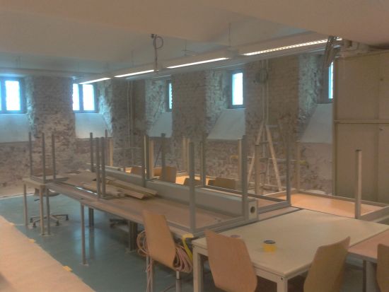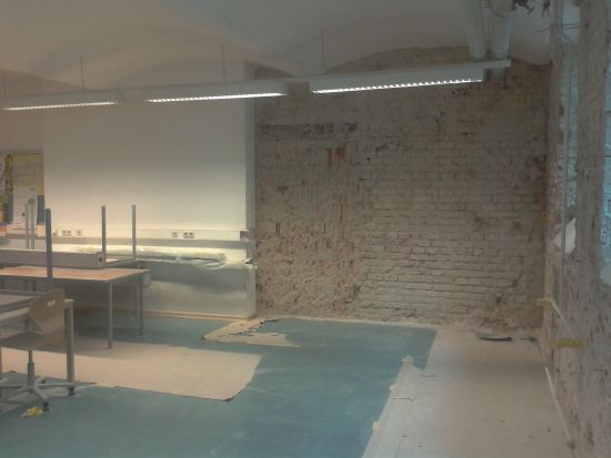 Da der Dachbodenausbau nicht genügend Raum für die benötigten Klassen und Sondersäle bot, entschloss man sich, den bei der Funktionssanierung unberührten Teil des Kellers mit den Duschen und Umkleideräumen neu zu gestalten. Es wurde eine tragende Wand zwischen den Duschen und der Garderobe entfernt, um Platz für einen neuen Unterrichtsraum für textiles Werken zu schaffen. Da der BE-Saal im hellen Dachgeschoss untergebracht wird, ziehen nun die Musiker in den freigewordenen Saal. Um alle Unterrichtsmaterialien unterzubringen wurde ein Teil des Saales abgetrennt und Platz für die Sammlung geschaffen.