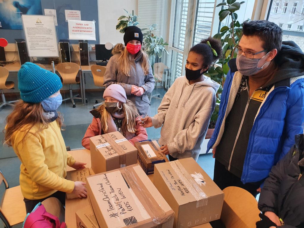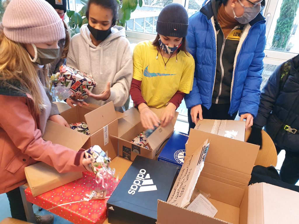 Um möglichst vielen bedürftigen Kindern mit einem Geschenk zu Weihnachten ein Lächeln ins Gesicht zu zaubern, hat die 3A dieses mal wieder an der Spendenaktion vom Samariterbund und der Post mitgemacht – nämlich bei der Aktion „Pakete fürs Christkind„. Als allererstes haben ein paar Gruppen Geschenke besorgt und sie weihnachtlich verpackt. Dann füllten wir eine Info-Karte aus und gaben es mit dem Geschenk in ein Paket. Dieses wurde sorgfältig verklebt. Schlussendlich gingen wir zur Post und gaben es dort ab. Jetzt können sich hoffentlich viele bedürftige Kinder zu Weihnachten auf ein Geschenk freuen. Sie können auch mitmachen. Viel Spaß dabei!