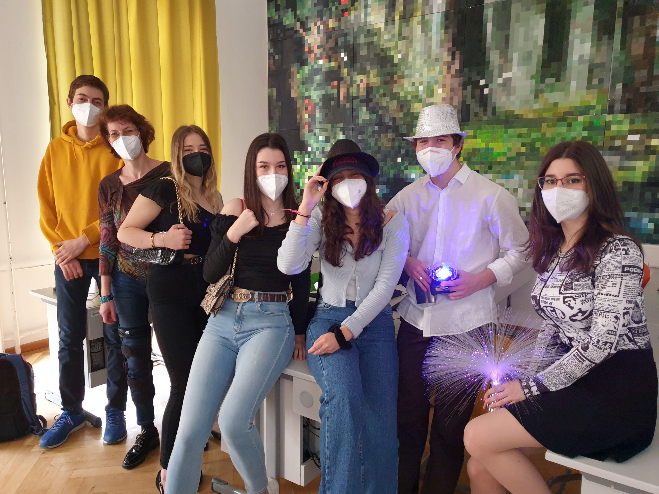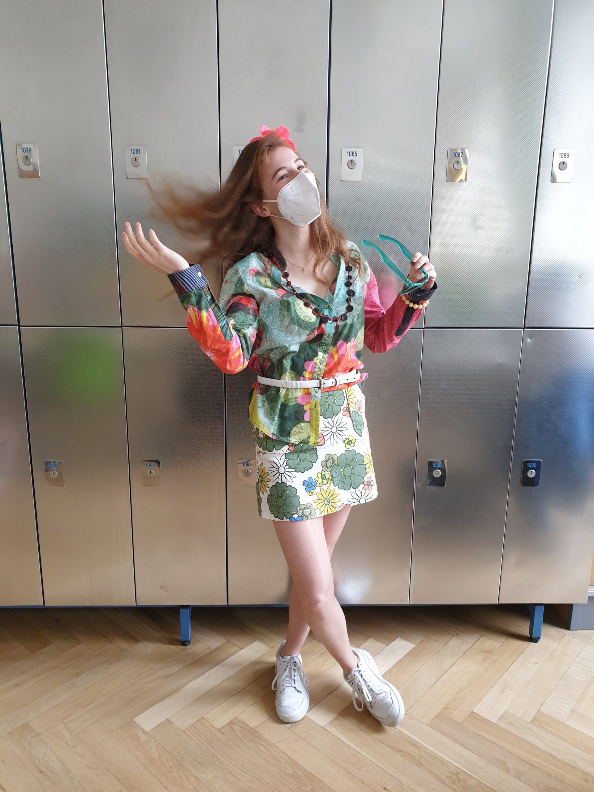 Deshalb hat die 8A in den letzten 2 Schulwochen Thementage veranstaltet. Diese standen unter den Mottos: High society, Assi, ein Jahrzehnt und Party. Die SchülerInnen wühlten in ihren Kästen, borgten sich Kleidung aus – die Geschäfte waren ja zu – und präsentierten sich in spannenden, lustigen Outfits!