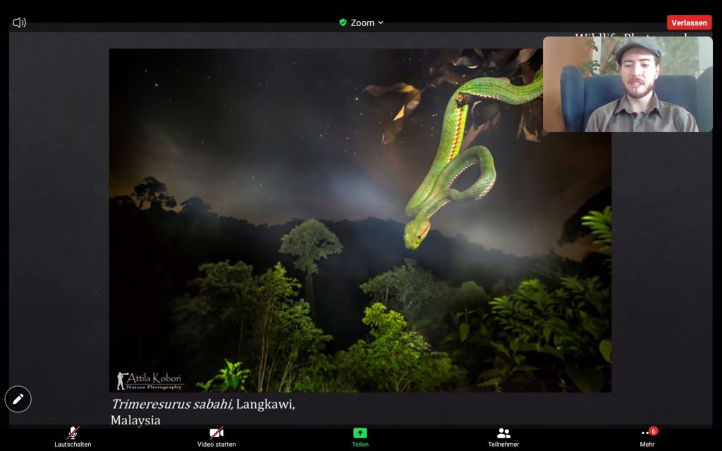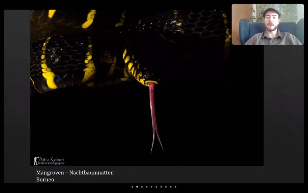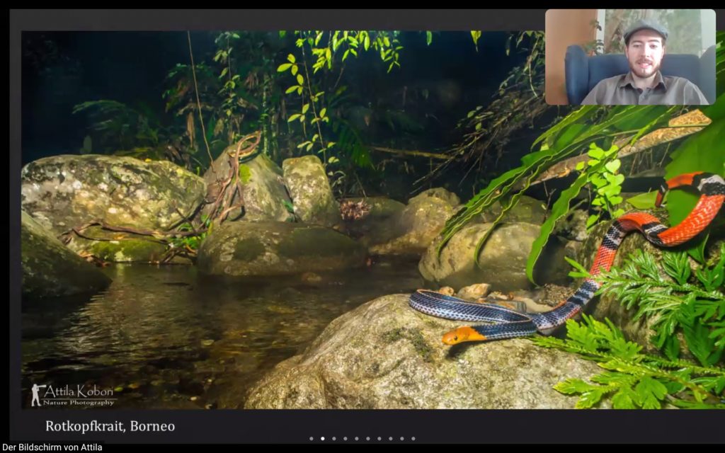Am Freitag den 30.4. 2021 lauschte die 3A und 5A einem Zoom-Vortrag von einem ehemaligen BRG18-Schüler, der über seine Regenwald-Erlebnisse als herpetologischer Naturfotograph gesprochen hatte. Dazu zeigte er nebenbei Fotos von Exkursionen, die er im tropischen Südostasien geschossen hatte. Teilweise kamen auch Erzählungen von Fluchtaktionen und merkwürdigen Begegnungen mit Einheimischen, die sehr interessant waren. Nach dem 45-minütigen Vortrag hat er auch Fragen von SchülerInnen beantwortet, die im Laufe der Zeit aufgetreten sind.