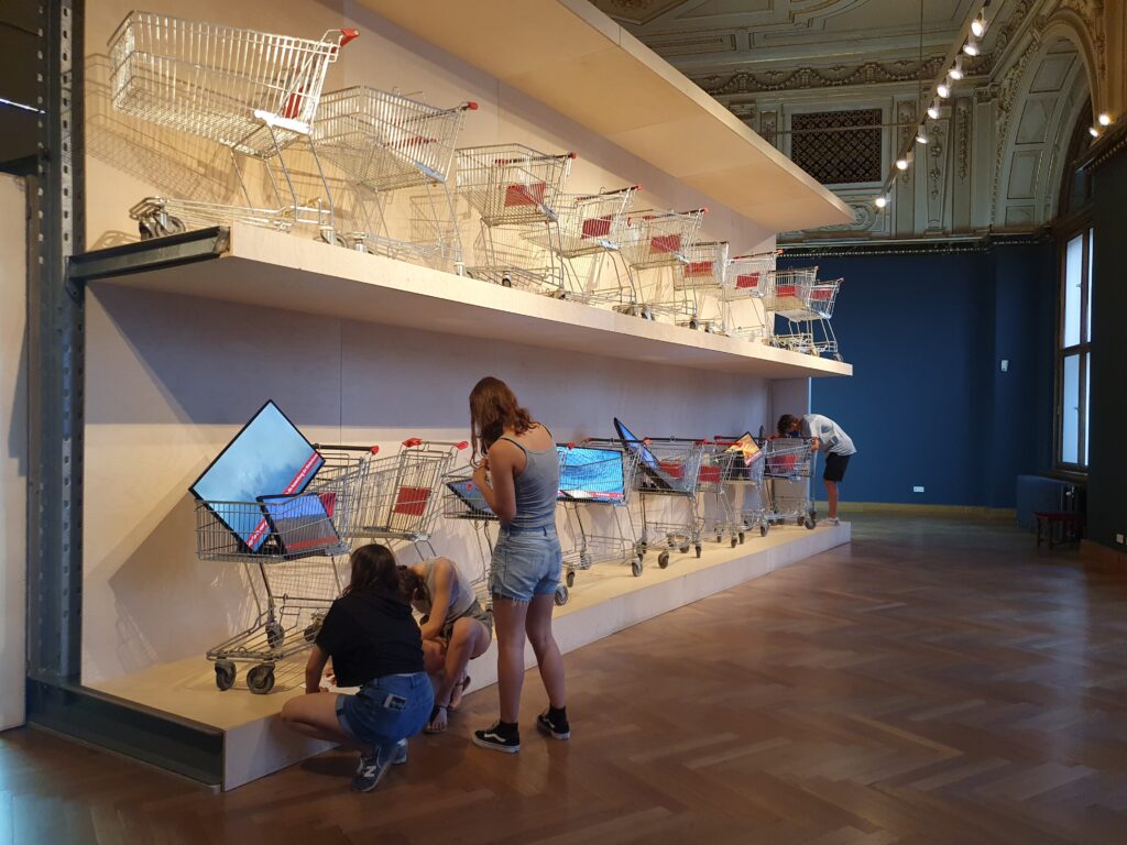 In Raum 2 war eine Wand wie im Supermarkt aufgebaut (mit Fleisch, Obst, Gemüse und mehr). Zu jedem genannten Lebensmittel gab es eine Tafel, wo beschrieben war, welches Problem dieses mit sich bringt und eventuell auch welche Möglichkeiten es gibt diesem entgegenzuwirken. Wir konnten auch Lesen, dass 70.00 Tonnen Backwaren jährlich weggeworfen werden, und eine Lösung wäre das man anfängt selber zu backen😊. Auf der anderen Seite der Wang waren 8 verschiedene Videos, zum Thema Anbau und Verarbeitung von Lebensmittel und den weitreichenden Folgen.