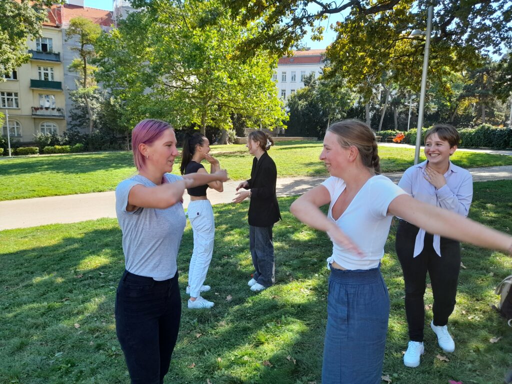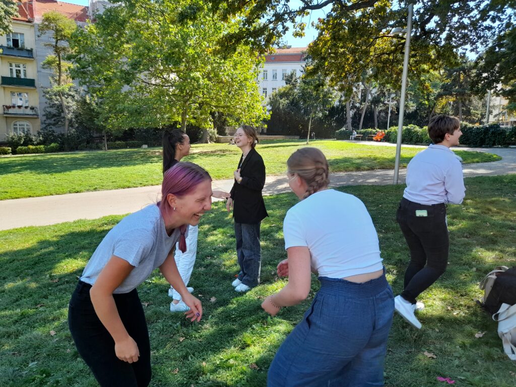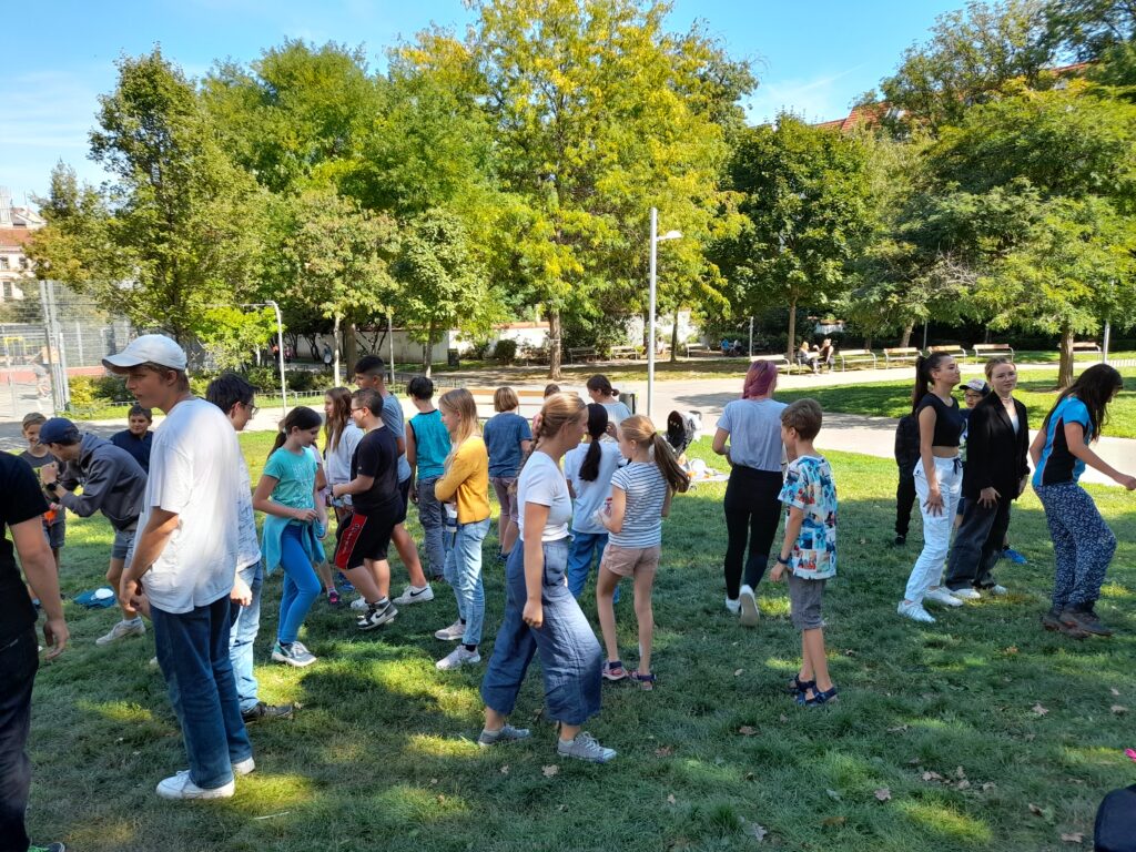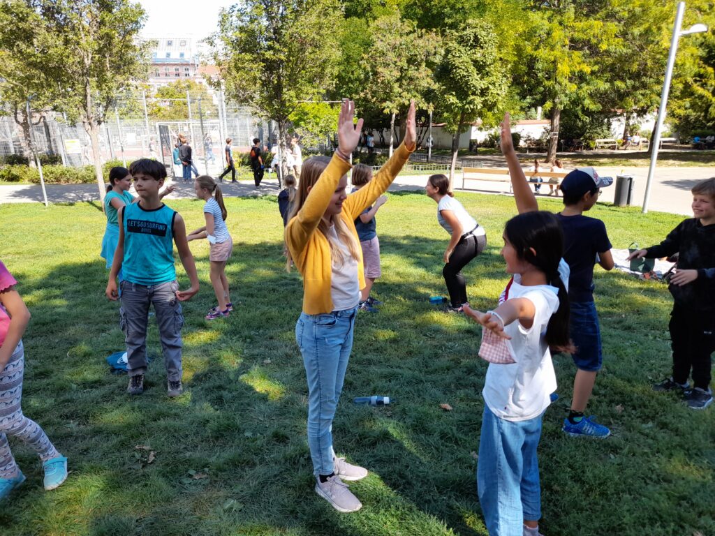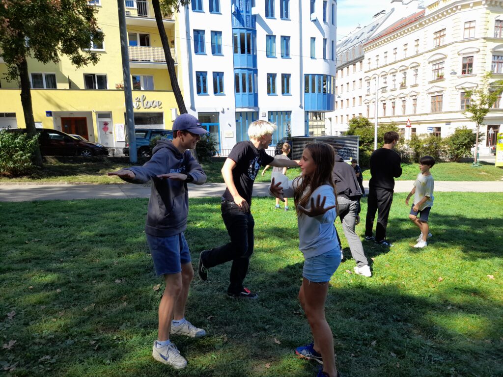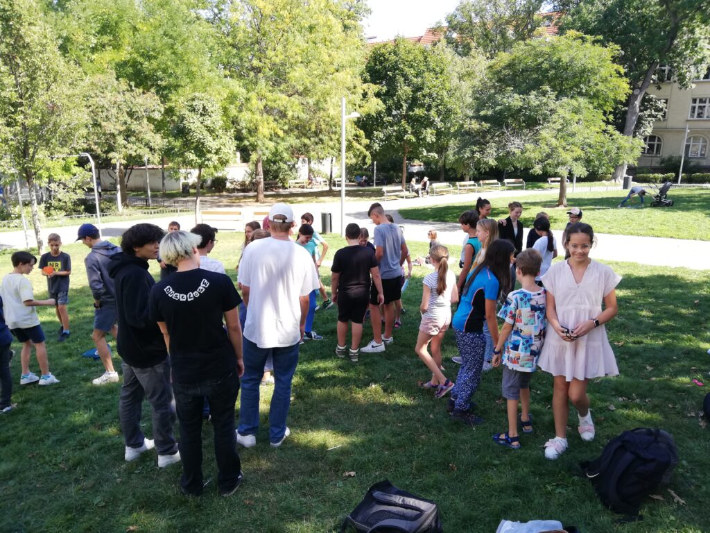 Endlich konnten sich die 2A und 8A im neuen Schuljahr wieder treffen und ihre bereits im Vorjahr geknüpften Kontakte auffrischen. Die Freude war auf beiden Seiten groß (hoffentlich ;)). Vor den Sommerferien haben sich die beiden Klassen mit kreativen szenischen Spielen im Währingerpark in die Ferien verabschiedet. In diesem Jahr ging es im Anschluss an die Begrüßungsspiele um spielerische Geschicklichkeit und Koordination sowie den Austausch über persönliche und schulische Ziele im diesjährigen Schuljahr. Den Klassenvorständinnen Christine Hecke und Nora Sulan wurde es ganz warm ums Herz beim fröhlichen Miteinander von Groß und Klein.
