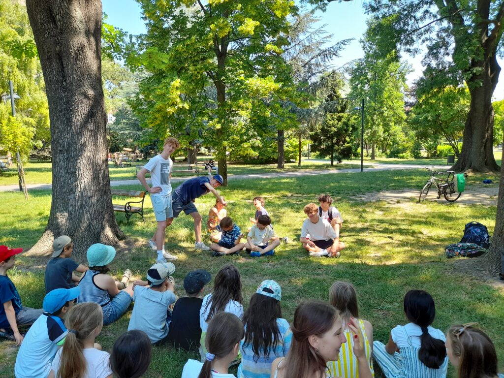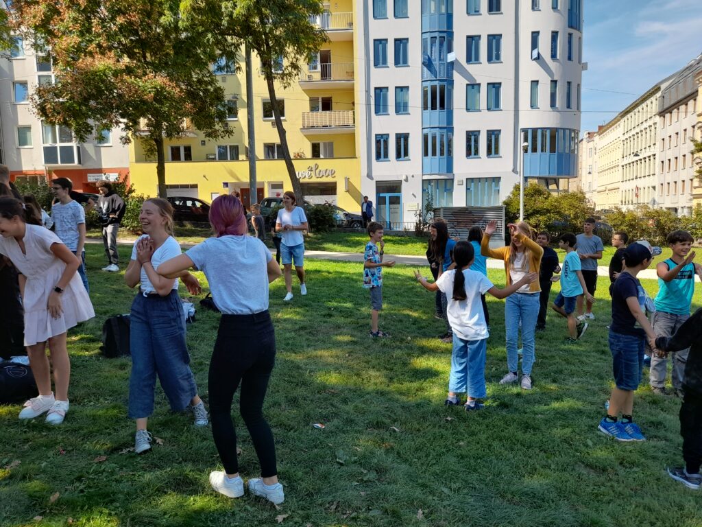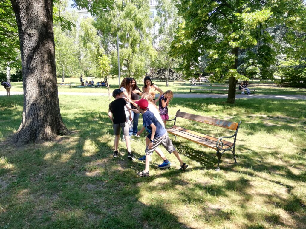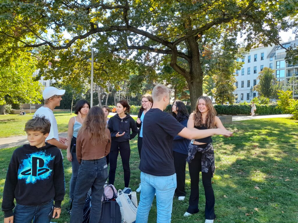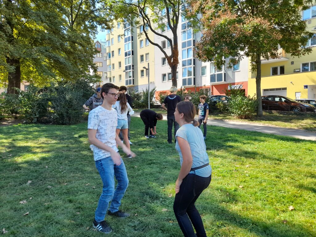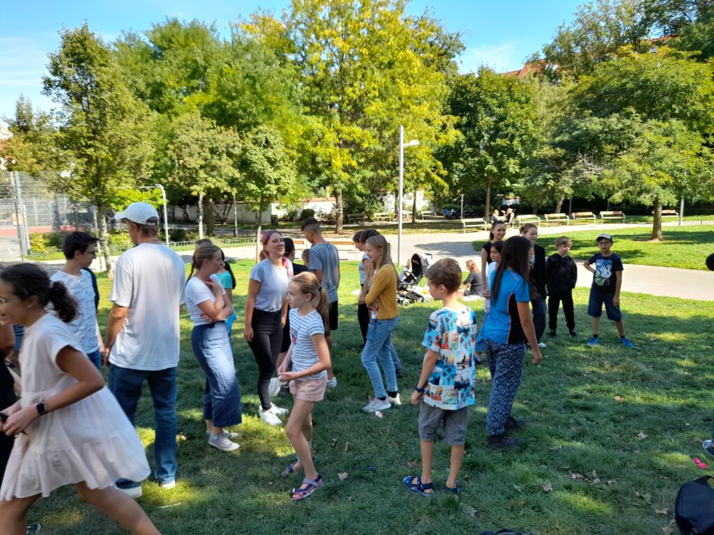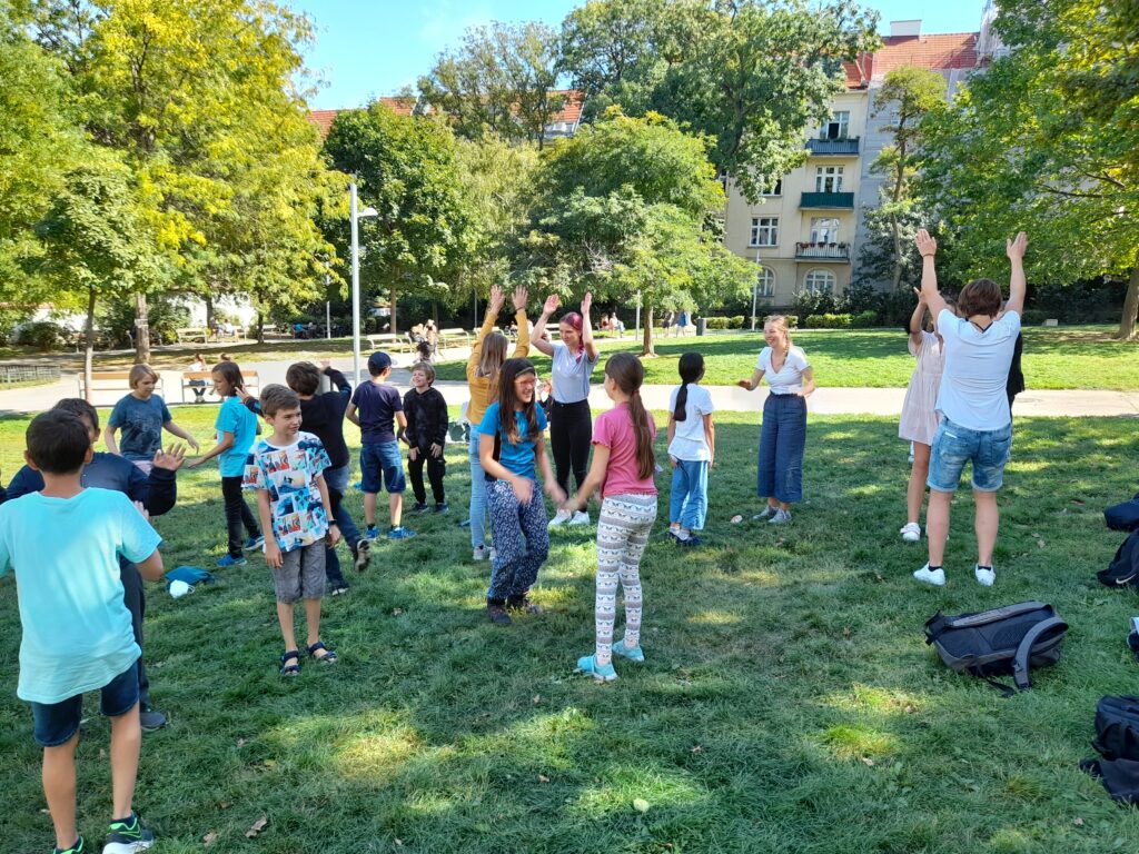 Endlich konnten sich die 2A und 8A im neuen Schuljahr wieder treffen und ihre bereits im Vorjahr geknüpften Kontakte auffrischen. Die Freude war auf beiden Seiten groß (hoffentlich ;)). Vor den Sommerferien haben sich die beiden Klassen mit kreativen szenischen Spielen im Währingerpark in die Ferien verabschiedet. In diesem Jahr ging es im Anschluss an die Begrüßungsspiele um spielerische Geschicklichkeit und Koordination sowie den Austausch über persönliche und schulische Ziele im diesjährigen Schuljahr. Den Klassenvorständinnen Christine Hecke und Nora Sulan wurde es ganz warm ums Herz beim fröhlichen Miteinander von Groß und Klein.