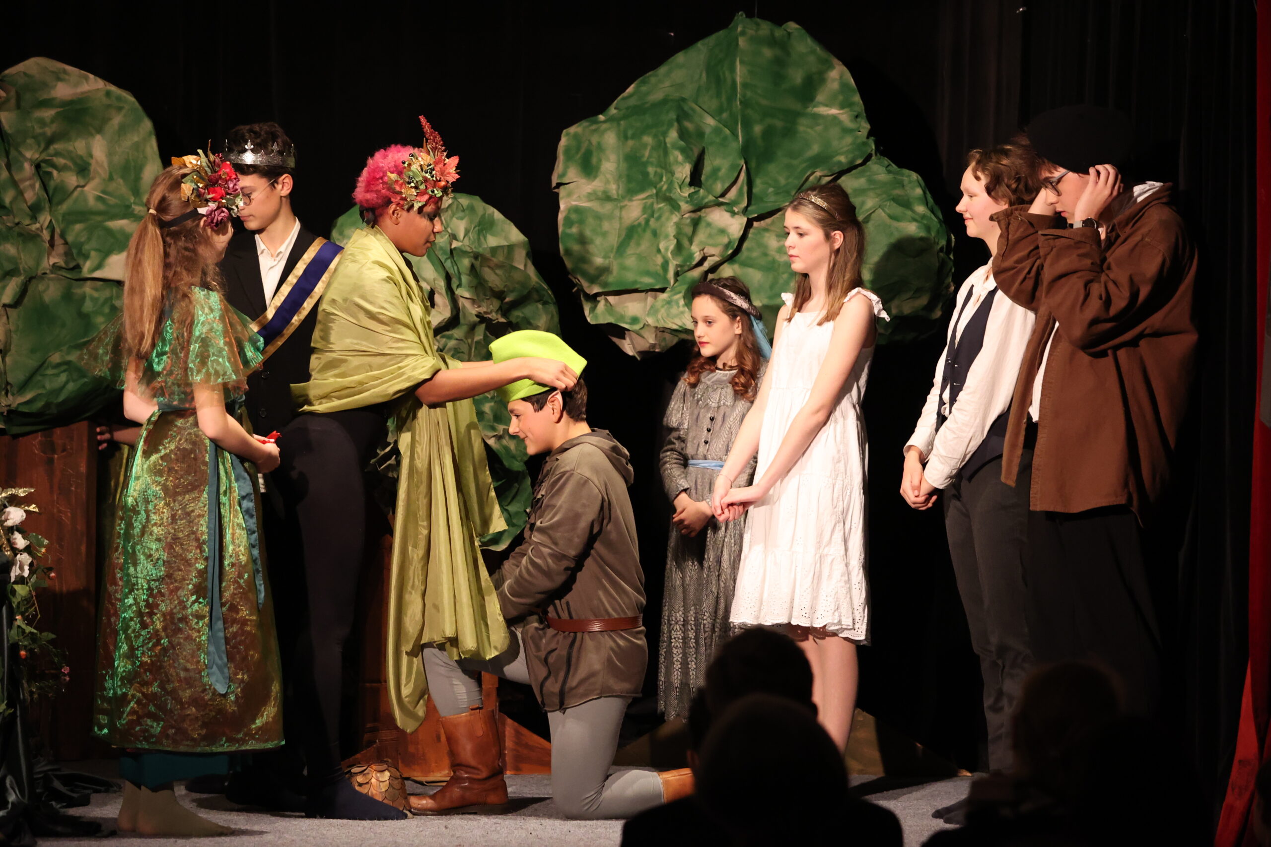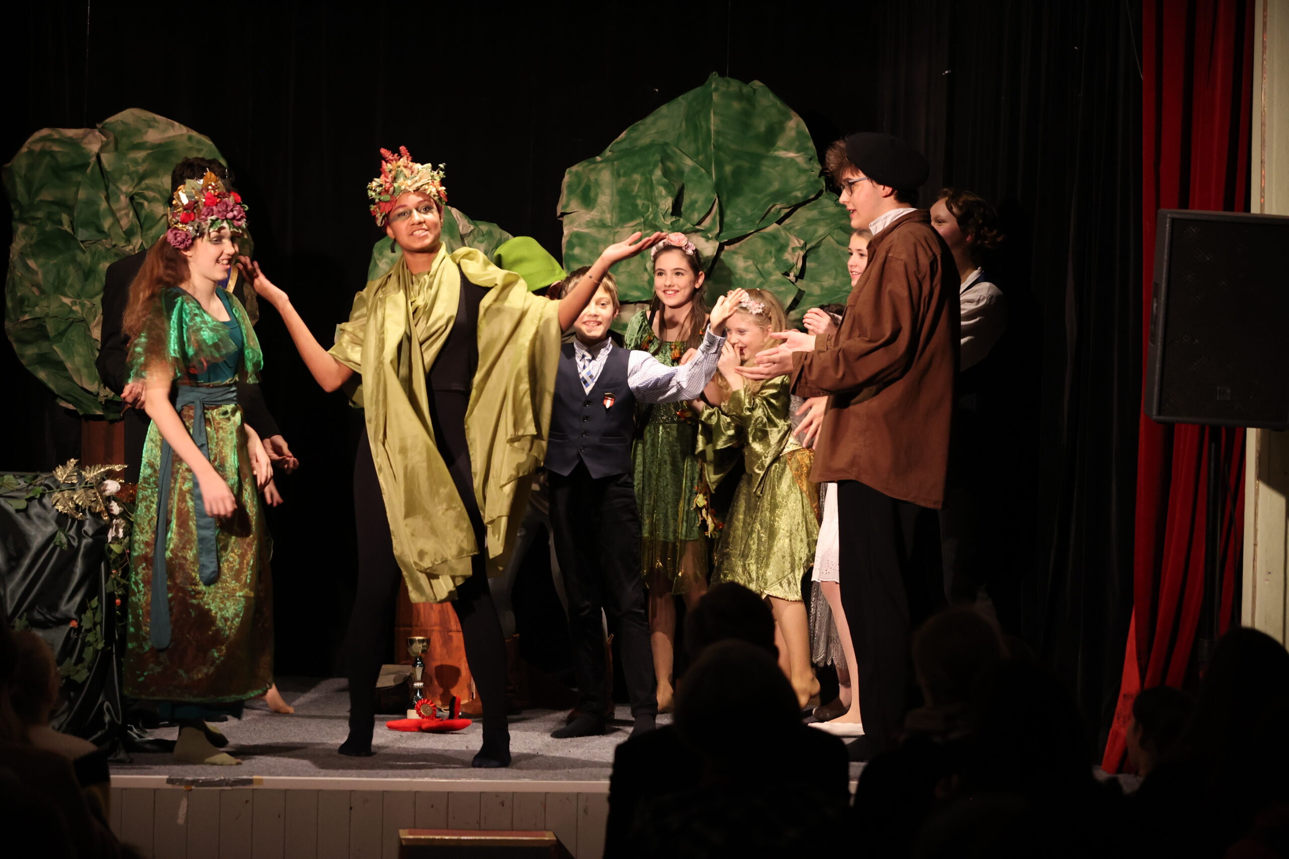 Das Ergebnis des einjährigen Probenprozesses konnte sich sehen lassen: Schüler*innen der 1. bis 5. Klassen entführten das Publikum in eine fantastische Welt voller Feen, Kobolde, Könige und Königinnen. Die rasante Verwechslungskomödie, die von der Liebe und ihren Tücken, von Macht und Emanzipation der Geschlechter in einer vermeintlich unverwüstlichen Männerwelt handelt, sorgte für gute Unterhaltung bei Jung und Alt und erhielt großen Applaus.
