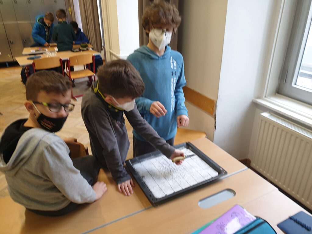 Festgehalten haben die einzelnen Gruppen ihre praktische Bruchrechnung in Form von Videos. Sehen sie selber! Sie sind unterhalb der Bilder zu finden 😊!