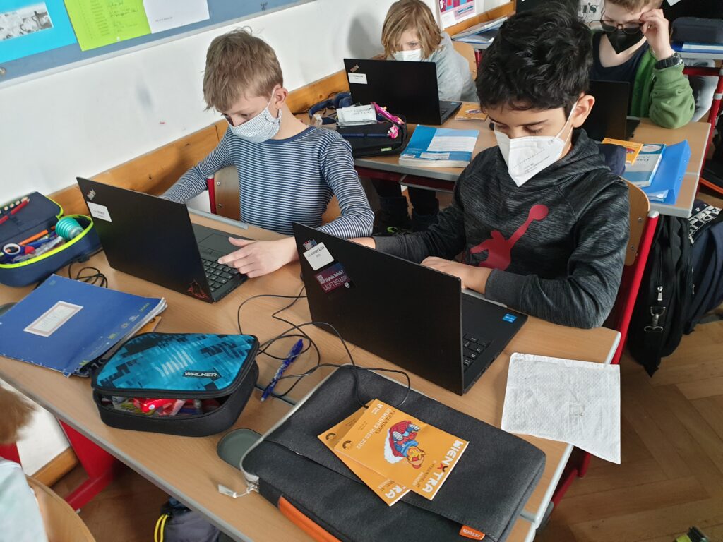 Seit November haben die SchülerInnen der 1. und 2. Klassen einen Laptop für den Unterricht bekommen. Die SchülerInnen bringen den Laptop am Laptoptag mit und verwenden die Geräte in den unterschiedlichen Unterrichtsgegenständen.