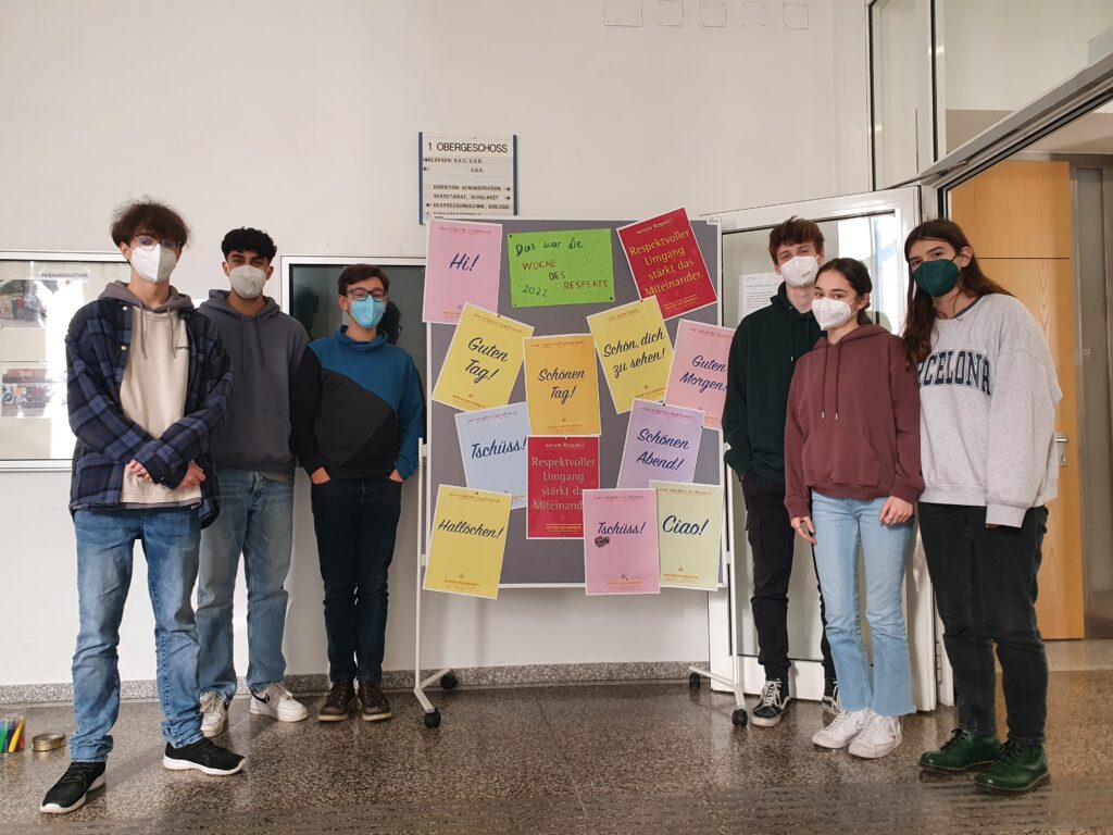 Mit einer kleinen Verschiebung fand im Februar 2022 die Woche des Respekts statt. In diesen Tagen standen Themen rund um Respekt und gemeinsamer Umgang im Vordergrund. Die Peers arbeiteten mit einigen Klassen zum Stärken des Miteinander. Plakate mit netten Grußformeln begleiteten uns im Schulhaus.