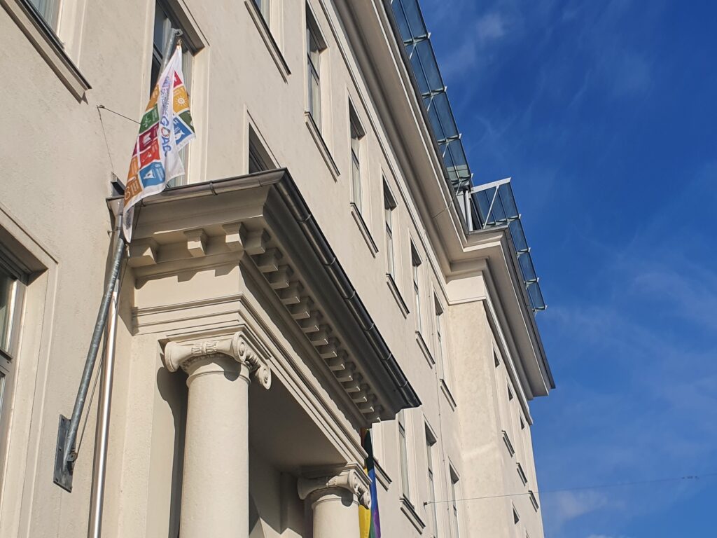 Danach haben wir einige davon auf einer unserer SDG Tafeln gesammelt, passt es doch hervorragend zum SDG16 Frieden, Gerechtigkeit und starke Institutionen
