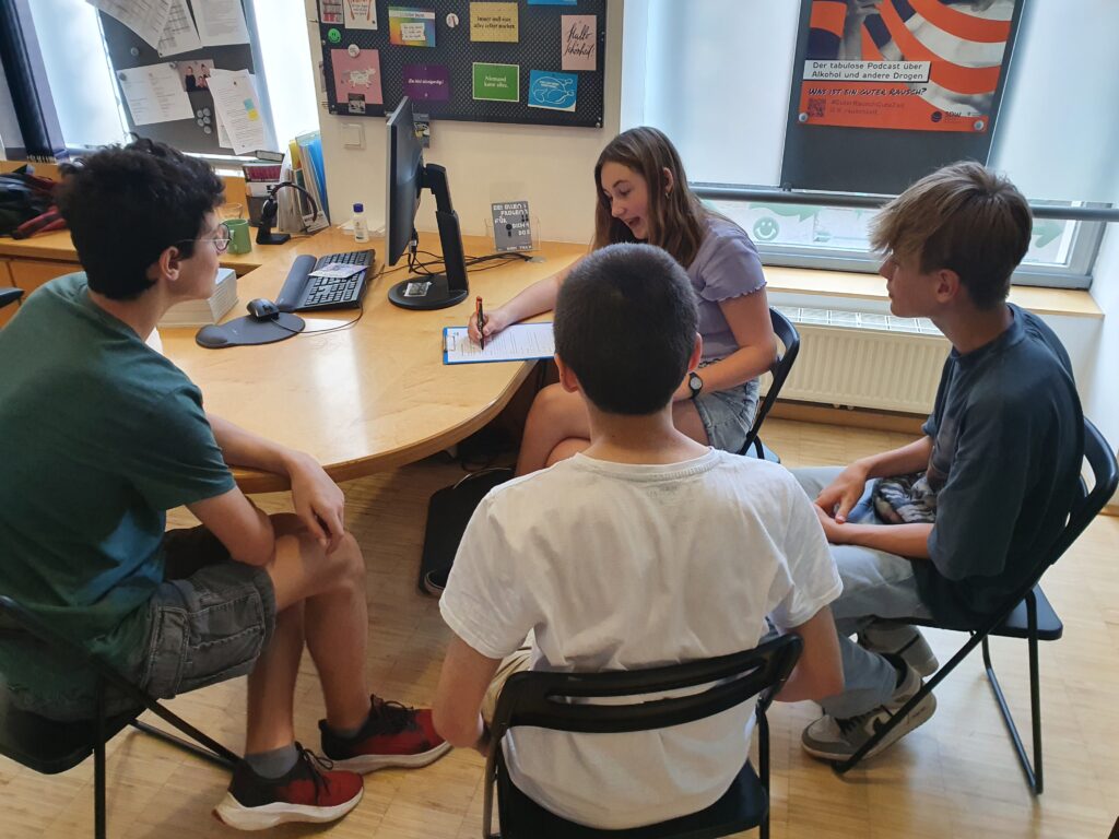 Wir haben viel über Menschenrechte und Gesetze geredet und mussten uns in Gruppen selbst auf Regeln einigen. Etwa ab welchem Alter man einen Sommerjob machen darf, wie lange man als Kind oder Jugendliche/r abends alleine draußen sein darf. Fragen, wie ab welchem Alter man bei medizinischen Behandlungen selbstständig Entscheidungen treffen können soll, oder Fragen zu Strafen nach Strafhandlungen oder Suchtmittel haben zu vielen Diskussionen geführt. Da haben wir erkannt, wie schwer es ist, sich demokratisch auf Gesetze zu einigen.