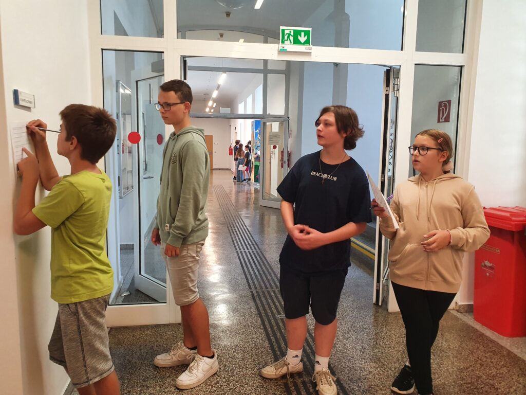 Aufgeregt waren definitiv alle, als die PartnerInnen in der 1D und 5A in der ersten Schulwoche zugelost wurden. Danach gab es aber gleich eine Gelegenheit einander besser kennenzulernen: Eine gemeinsame Erkundung des Schulhauses. Da konnten die erfahrenen BRG18 SchülerInnen aus der 5A den neuen Kindern in unserer Schule aus der 1D helfend zur Seite stehen!