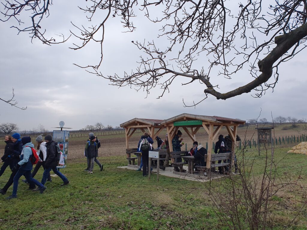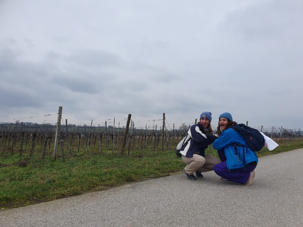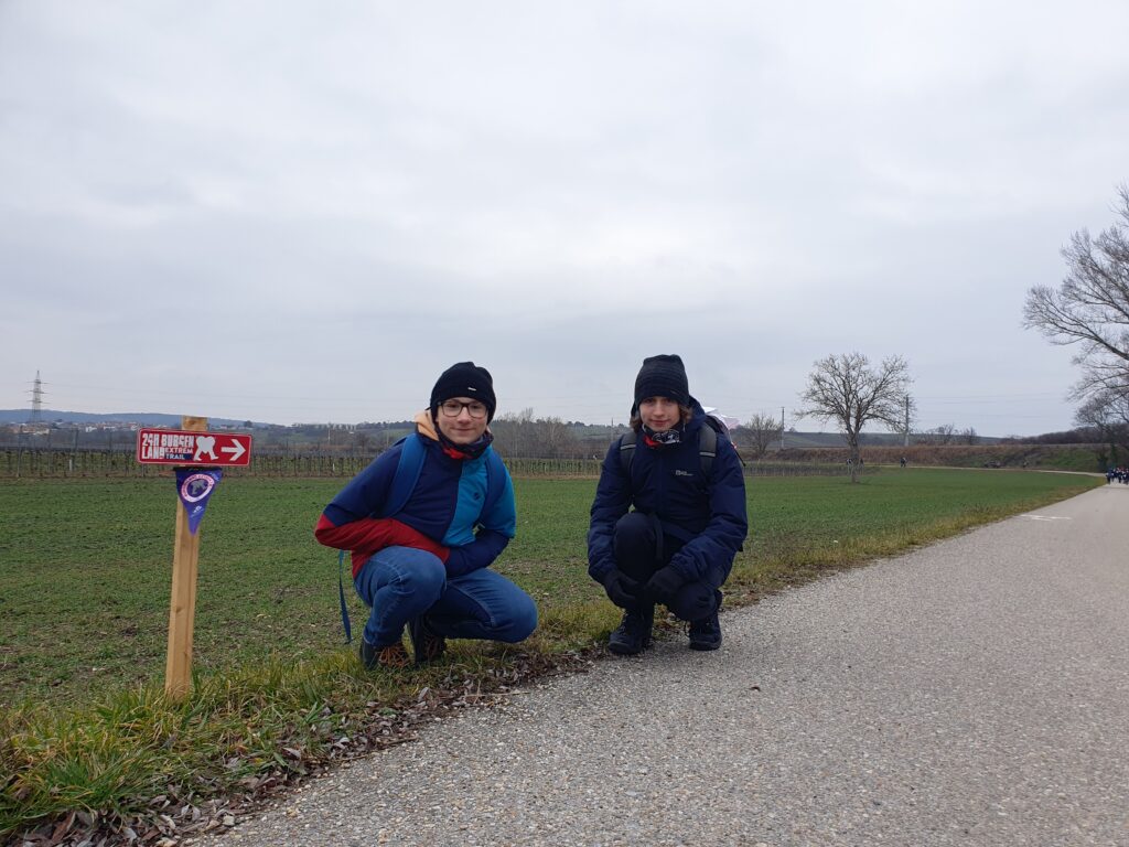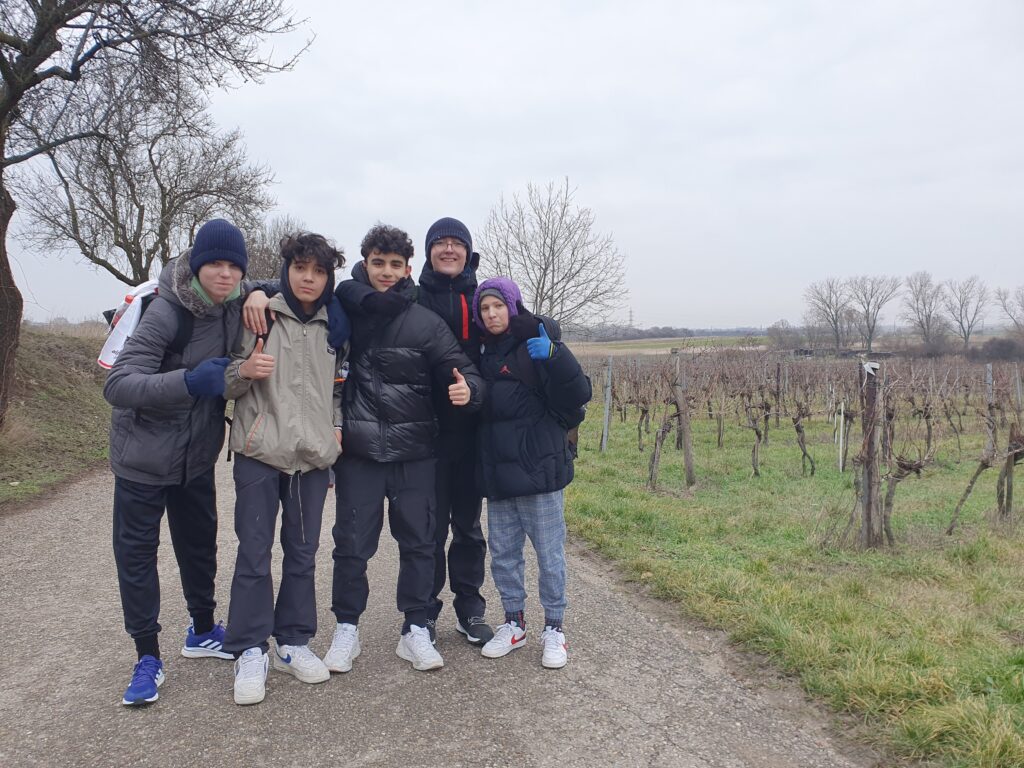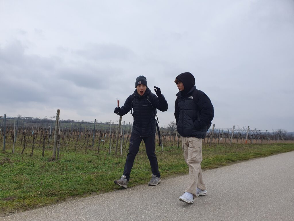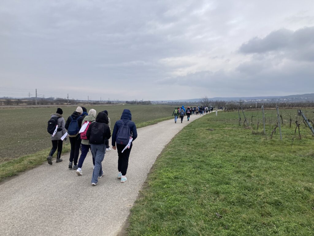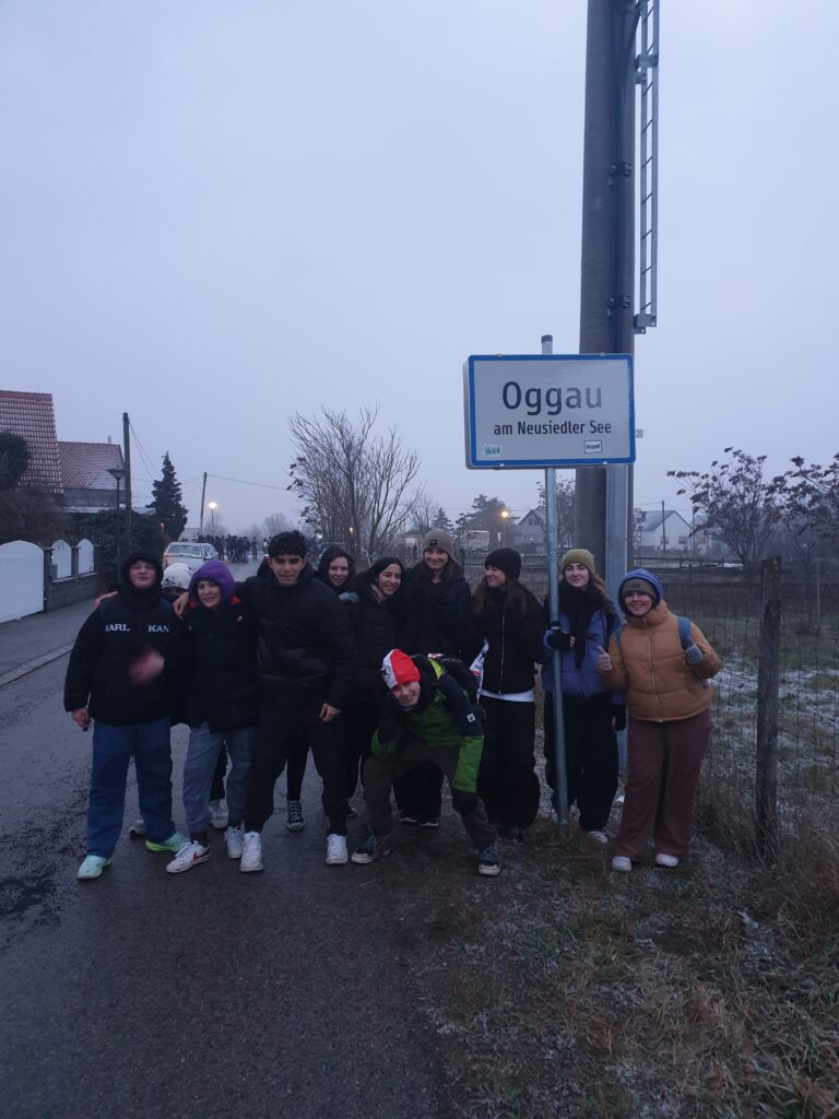 06:45 Uhr am Meidlinger Bahnhof. Das Abenteuer begann am frühen Morgen. Nach einer einstündigen Fahrt von Wien nach Neusiedl am See waren wir am Startpunkt angekommen: dem Pannoneum im südlichen Neusiedl am See. Nach einer kurzen Stärkung mit Striezel, Obst und Getränken und ein paar Fotos bei der Startlinie ging es um 8:45 Uhr los: die 30 Kilometer Wanderung bis nach Oggau am Neusiedler See. Jetzt hieß es vier Kilometer gehen bis zur ersten Labestation in Jois. Nach dem dortigen Aufenthalt und kurzer Stärkung ging es weiter Richtung Oggau. Dabei durchquerten wir die Gemeinden Winden am See, Breitenbrunn, Purbach am Neusiedler See und Donnerskirchen und hielten bei einigen Labestationen dazwischen an. Ungefähr um 17:15 erreichten wir alle gemeinsam das Ziel in Oggau am Neusiedler See. Dort gab es dann auch eine Medaille für uns. Stolz auf unseren Erfolg und erschöpft von der Wanderung fuhren wir mit dem Bus nach Schützen und von dort aus mit dem Zug wieder nach Wien zurück. Für alle war das ein tolles Erlebnis für das Semesterende!