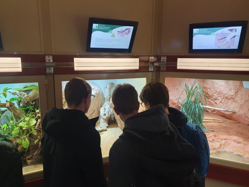 Im Jänner besuchte die 6A im Rahmen des Laborunterrichts das Haus des Meeres. Der Treffpunkt war vor den Eingangstüren. Wir sollten uns gleich nach der letzten Unterrichtstunde zum abgesprochenen Punkt begeben. Man braucht ca. 30 Minuten für den Weg zum Haus des Meeres von der Schule. Es befindet sich neben der berühmten Mariahilferstraße.