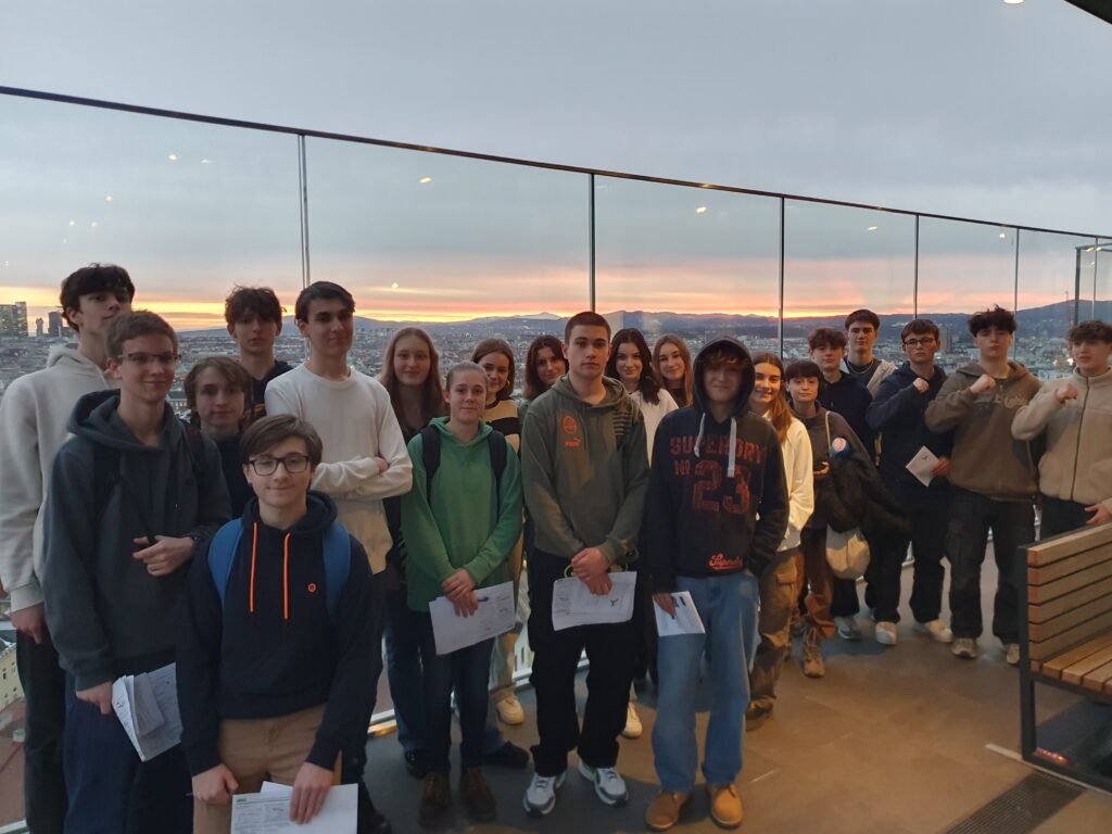 Ganz am Dach wurde unsere Klasse für ein gemeinsames Foto zusammengebracht und wir hatten die Möglichkeit, den Untergang der Sonne zu bewundern. So hat unser Schulausflug geendet.