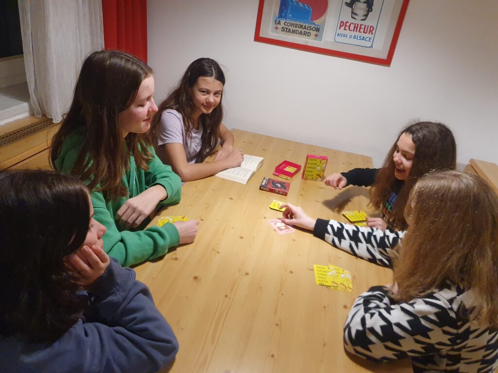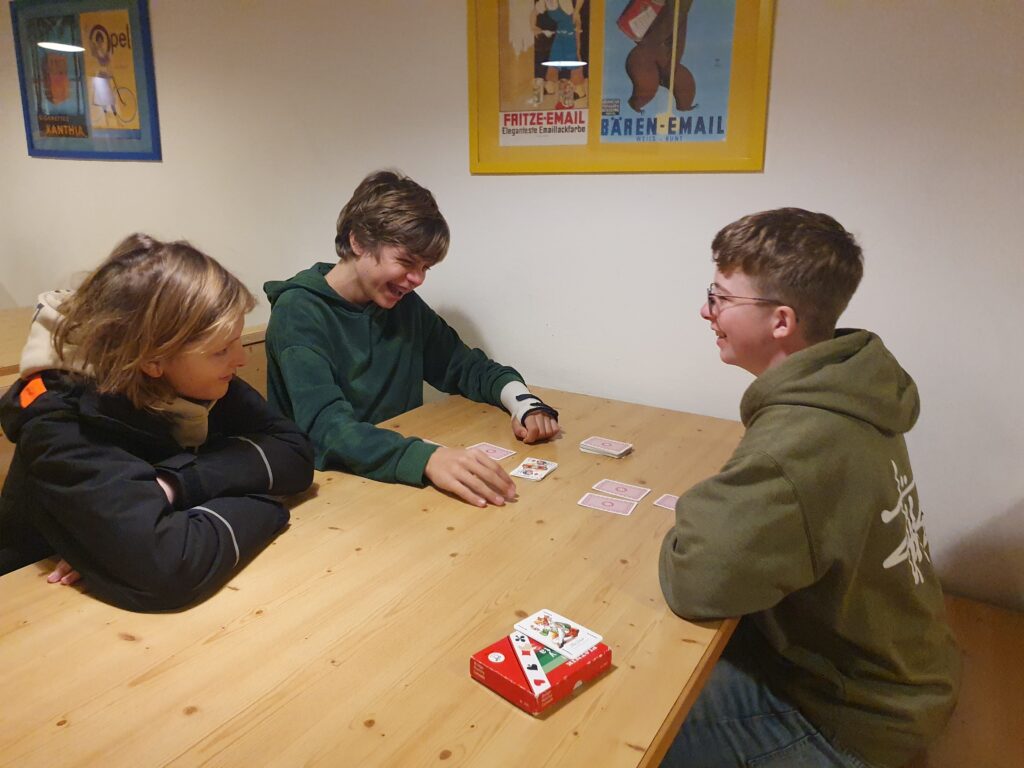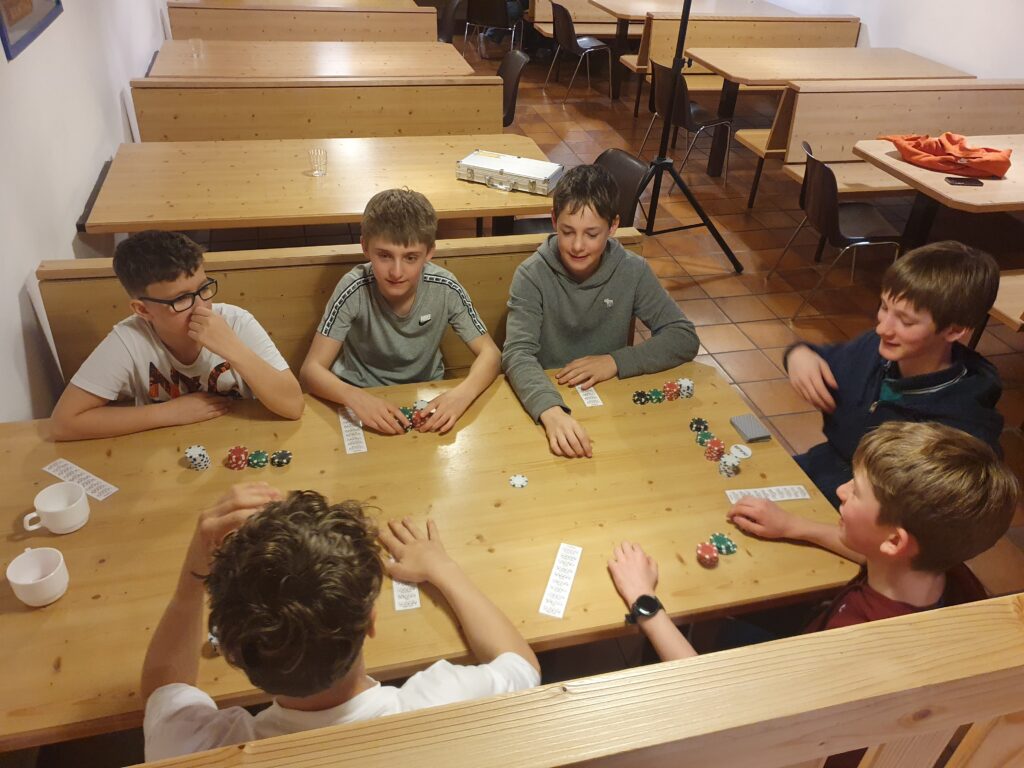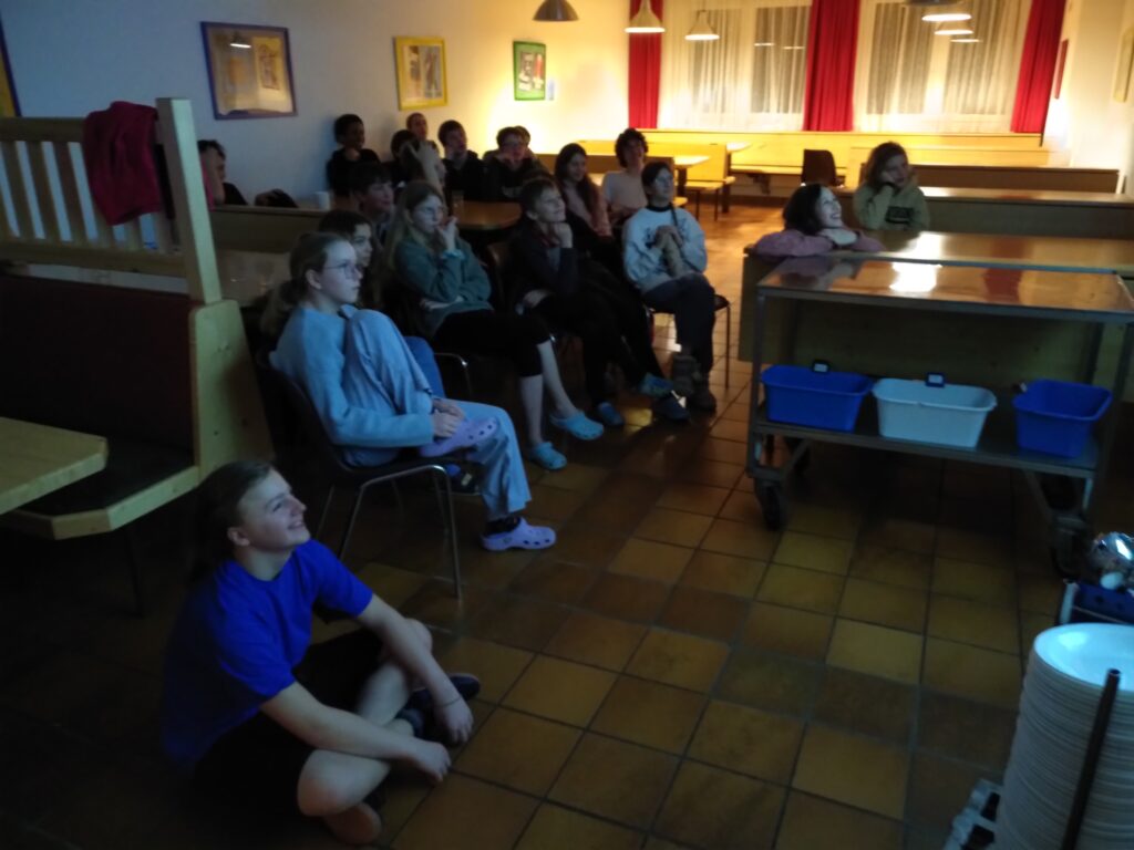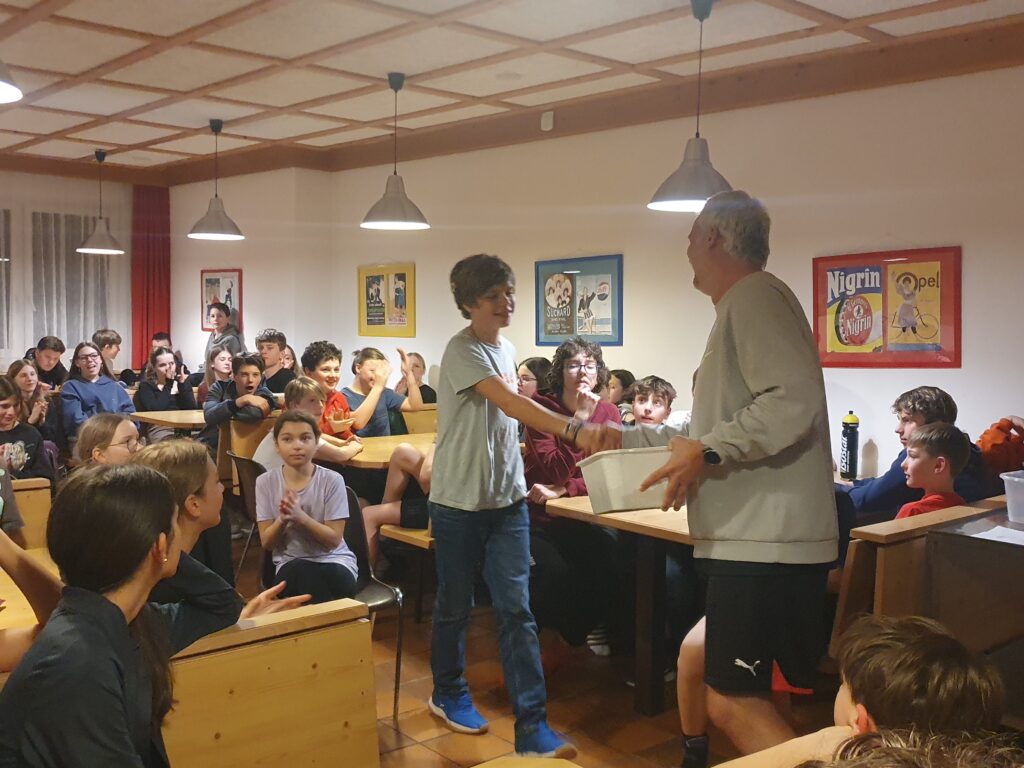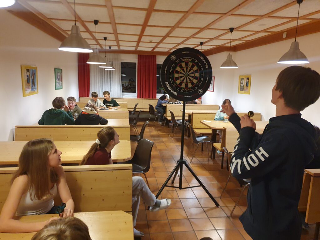 Die folgenden Tage vergingen ähnlich, allerdings hatten wir jeden Tag ein anderes Abendprogramm. Zum Beispiel ein Völkerballturnier zwischen den drei Klassen, Quizze, ein Dartsturnier, Brettspielmöglichkeiten, und uns stand ein großer Turnsaal zur Verfügung, den wir allerdings nicht sehr gerne benutzten, da er sehr kalt war. Am Mittwoch wurde uns eine coole Disco mit vielen Liedern zur Verfügung gestellt. Wir haben viel gesungen und getanzt.