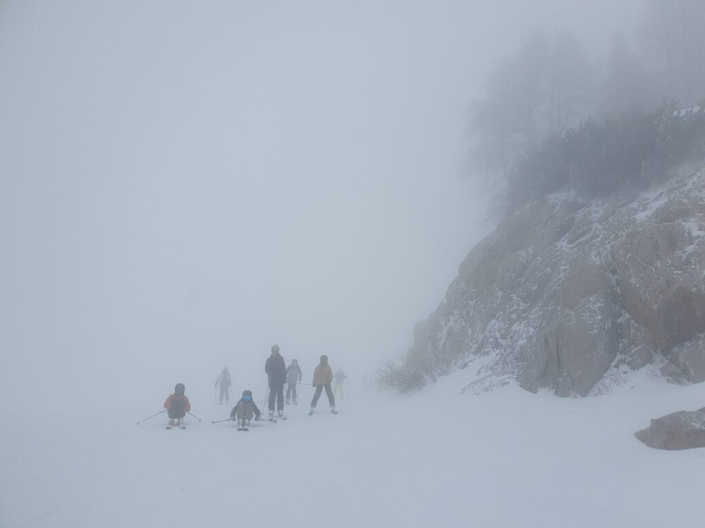 Maya und Sarah: Wir wussten schon am Vortag, dass das Wetter nicht gut wird. Leider haben die Lehrer entschieden, trotz den Winden und Stürmen zu fahren. Als wir bei der Gondel waren, mussten wir feststellen, dass mit uns viele Menschen auf den Berg wollten. Zu unserem Glück verging das Warten schnell. Als dann alle Gruppen bei deren Lehrpersonen waren, konnte der Tag beginnen. Wir froren alle überall. Zum Glück mussten wir nicht den ganzen Tag, sondern nur bis zum Mittagessen fahren. Die ersten Stunden liefen bis aufs Frieren und Jammern sehr gut. Als wir dann die Rückkehr antreten wollten, fiel unsere Talfahrt-Gondel aus. Als wir das erfuhren, dachten wir alle, dass das unser Ende sei. Die Lehrer haben jedoch Ruhe und Hoffnung bewahrt. Da wir alle Hunger hatten, schlugen uns die Lehrer die 1-stündige Talabfahrt vor. Wie stimmten alle zu, da wir nicht warten wollten, bis die Gondel wieder funktioniert. Später stellte sich heraus, dass die Gondel wegen dem Sturm einen Aussetzer hatte. Als wir schon die Talstation sahen, erlaubten uns die Lehrer alleine zu fahren. Am Ende waren wir alle glücklich und unversehrt.