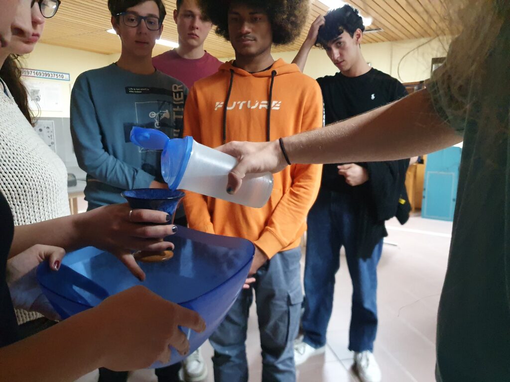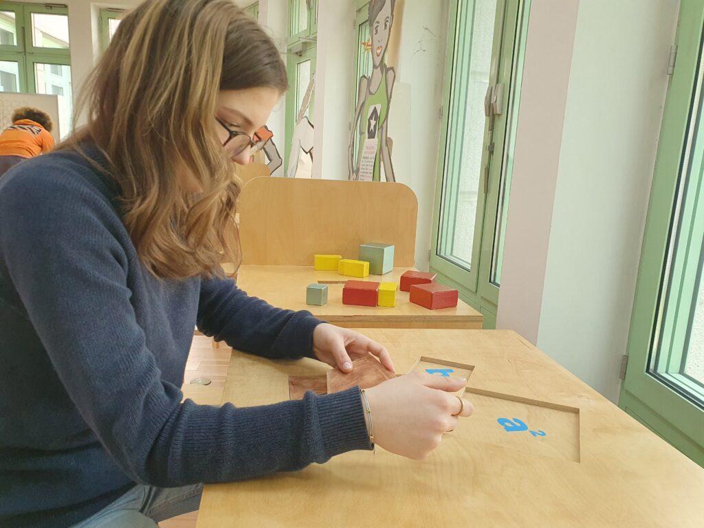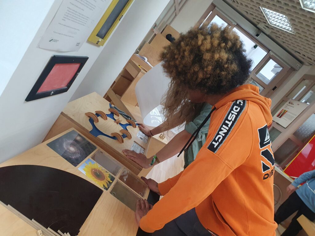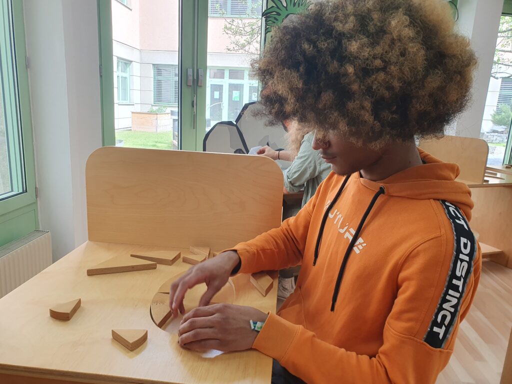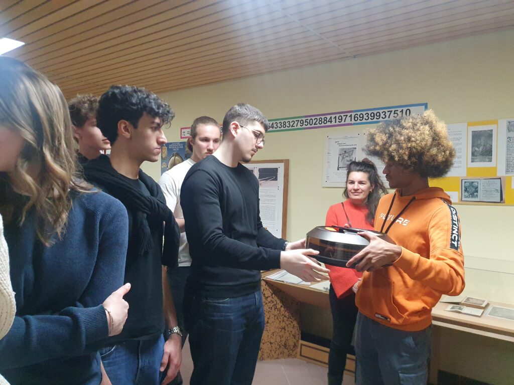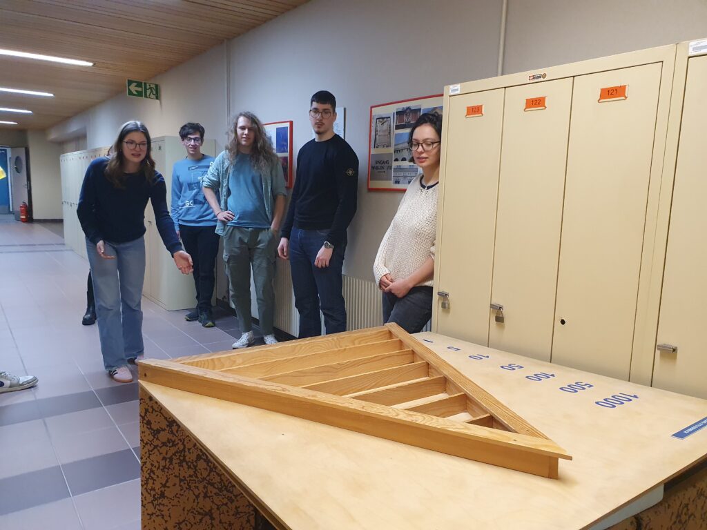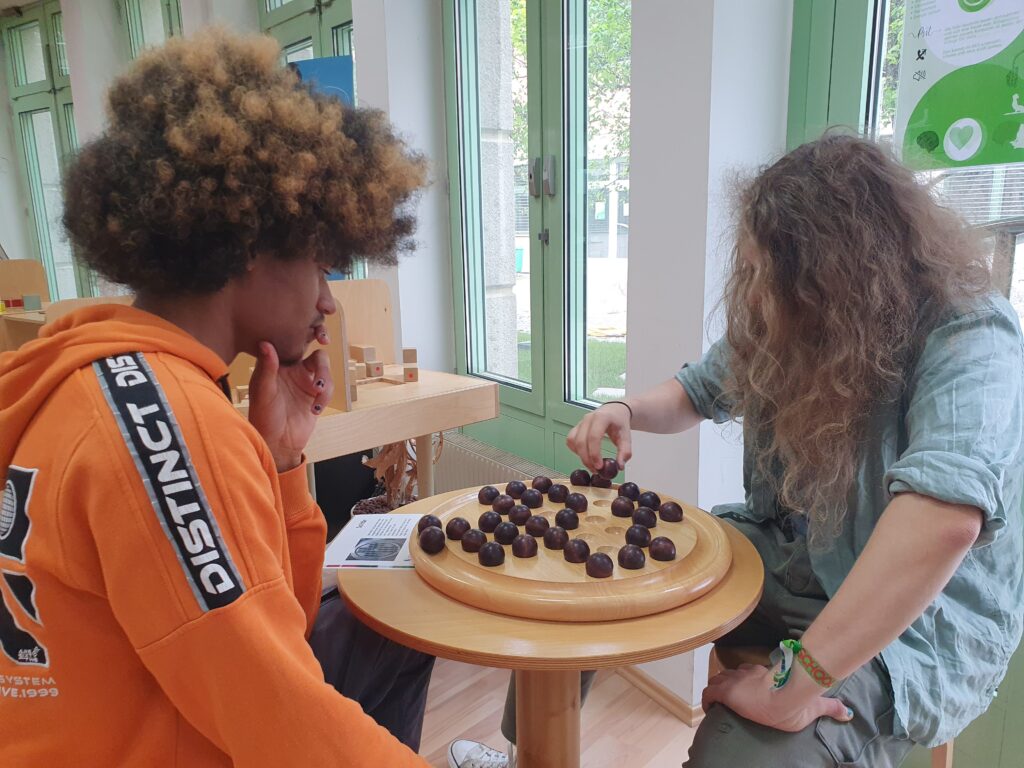 So bewunderte die Klasse die historischen Sammelstücke im Museumsteil wie alte Rechenmaschinen oder riesige Speichermedien. Ein nachgebauter Gerechtigkeitsbecher des Pythagoras und Messinstrumente der alten Ägypter wurden ausprobiert. Auch die Spieletische forderten die Nerven ordentlich – gar nicht so einfach, all diese Aufgaben zu lösen! War schön, euch noch mal in Action zu erleben!