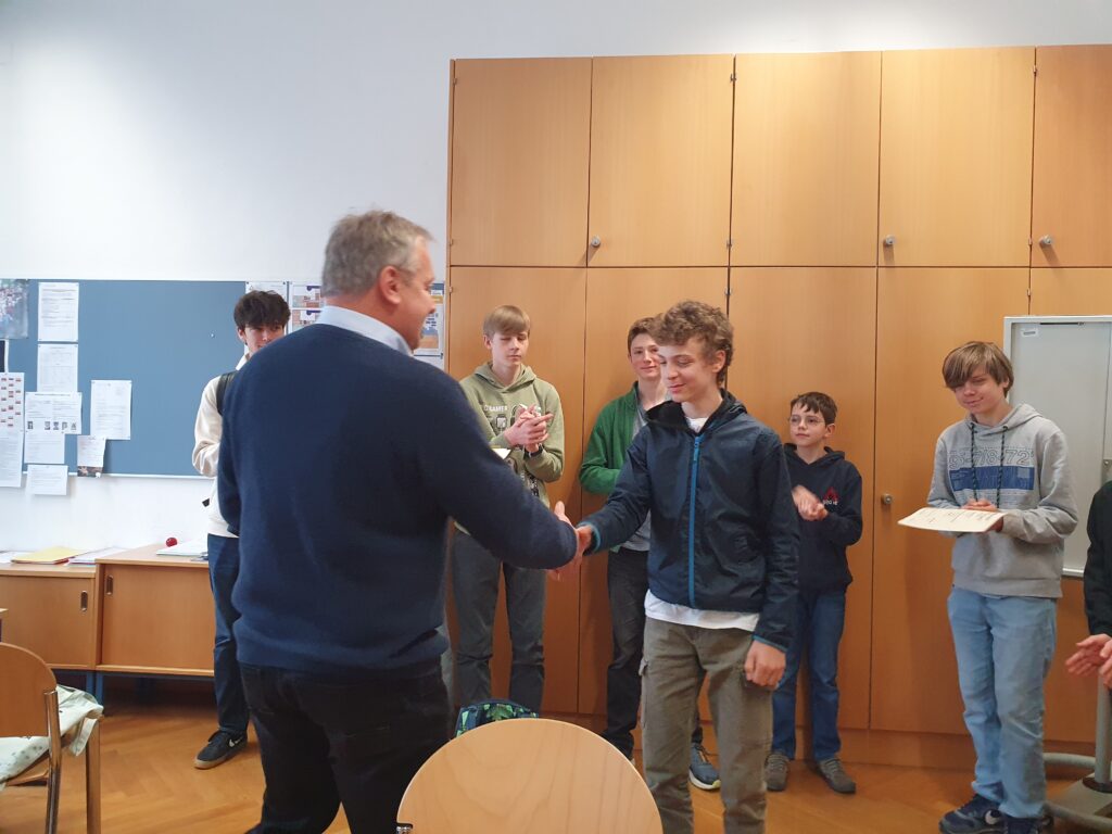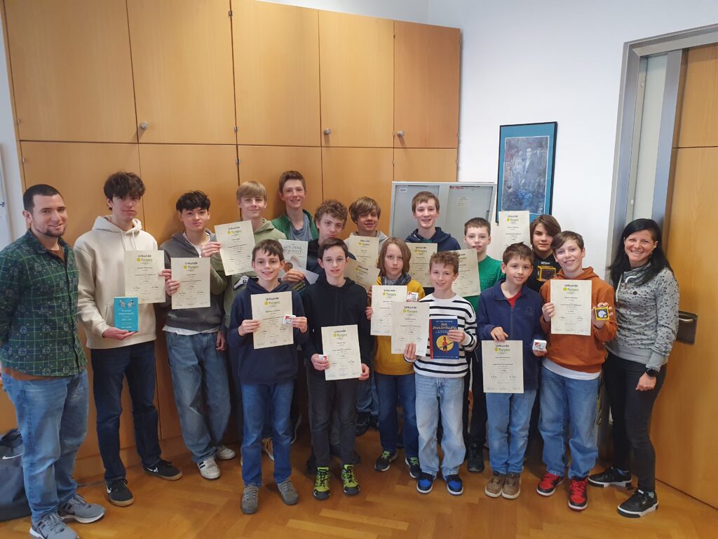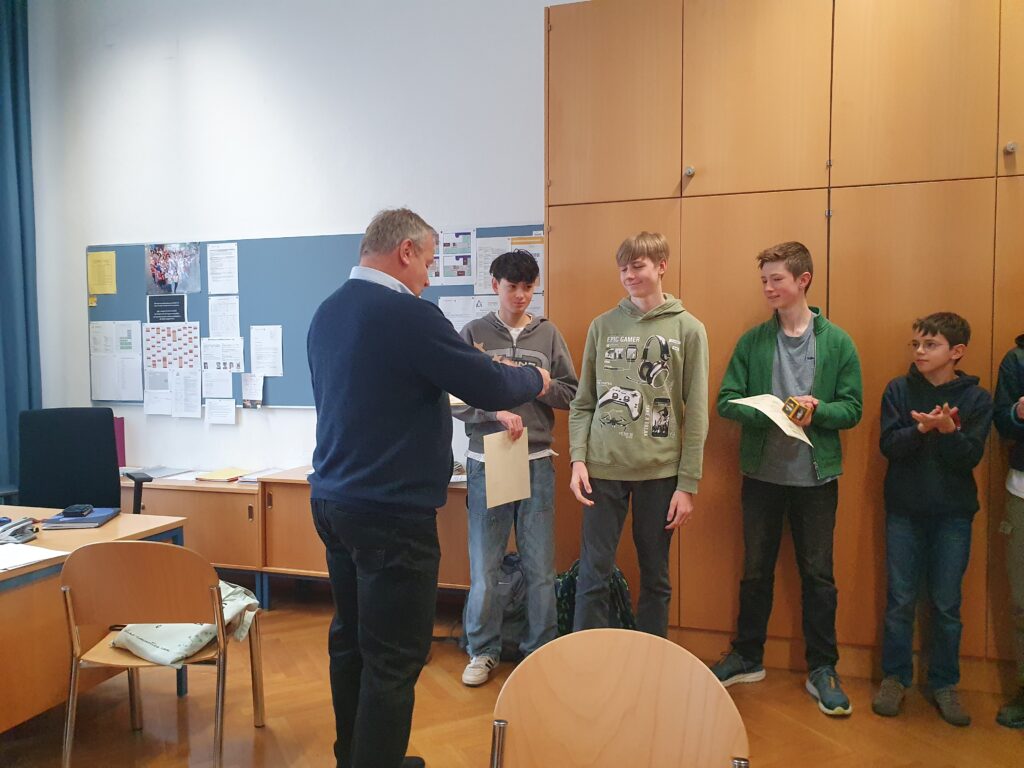 Die Bestplatzierten der Schule bekamen am 24. April 2024 freudig eine Urkunde und einen Preis in der Direktion überreicht. Allen Finalist*innen wünschen wir viel Erfolg für das große Finale am 12. Mai!