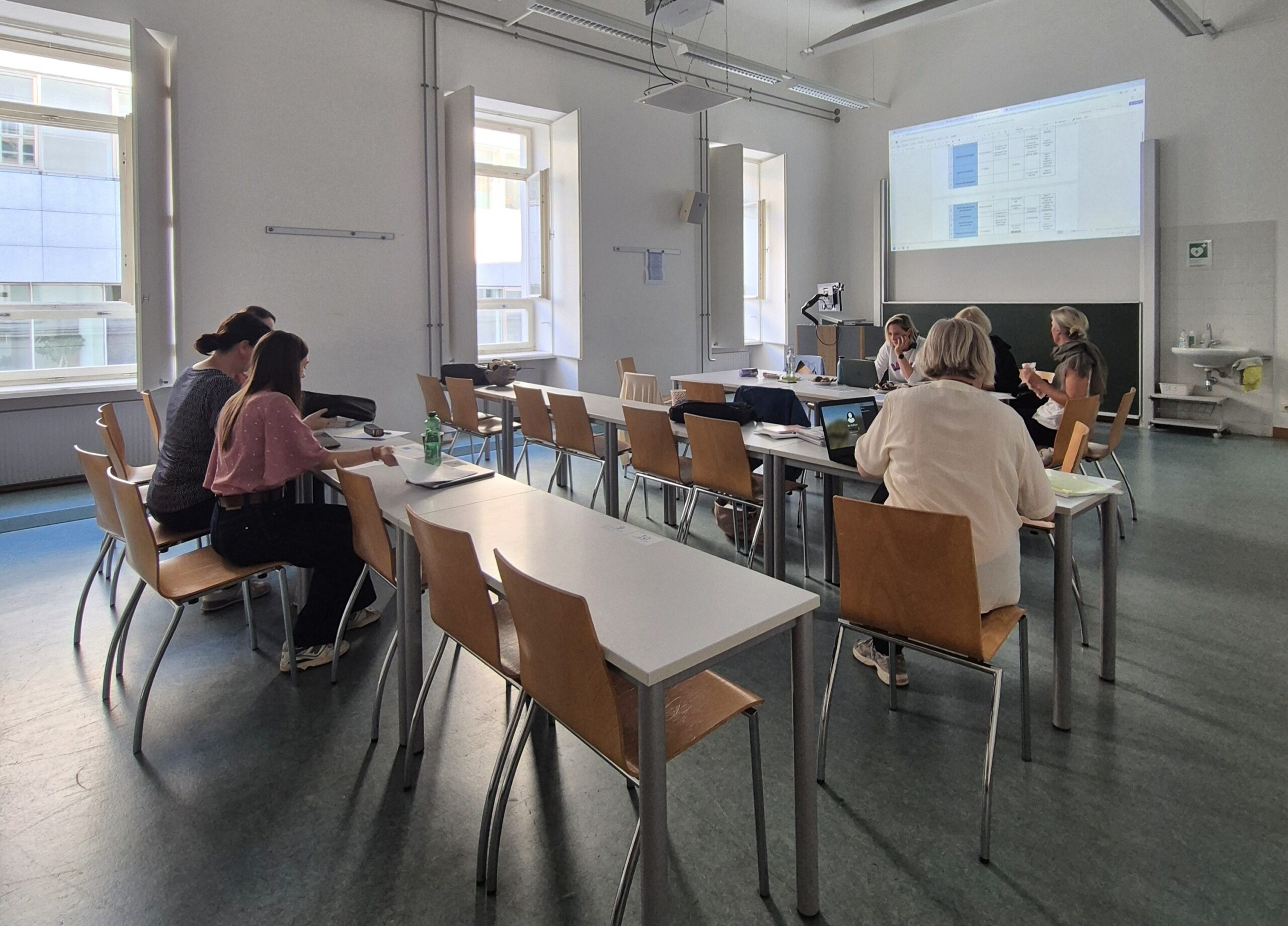 Nach über zehn Jahren war unser Themenpool Englisch schon etwas in die Jahre gekommen. Daher haben sich die 10 Anglistinnen und der 1 Anglist am RG 18 für einen ganzen Tag, den 22. 9., ins Institut für Anglistik der Uni Wien zurückgezogen. Auf dem Programm stand die gründliche Neugestaltung der 18 Maturathemen und die Erarbeitung von 72 neuen Maturaufgaben. Wie man sieht, haben wir in den 9 Stunden richtig hart gearbeitet – uns aber auch darüber gefreut, was für eine super Fachgruppe wir sind! Die Ergebnisse sind toll, aber noch top secret – bis zur Matura 2026 …