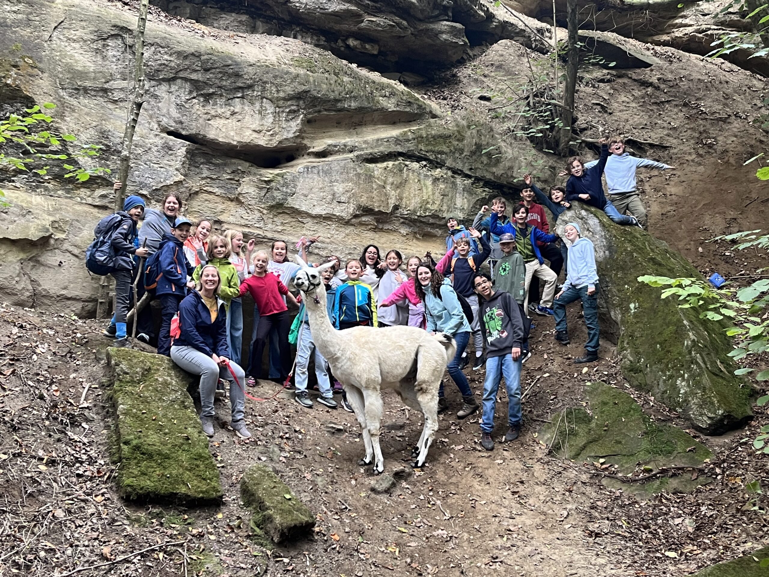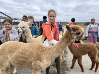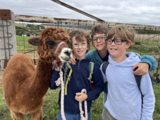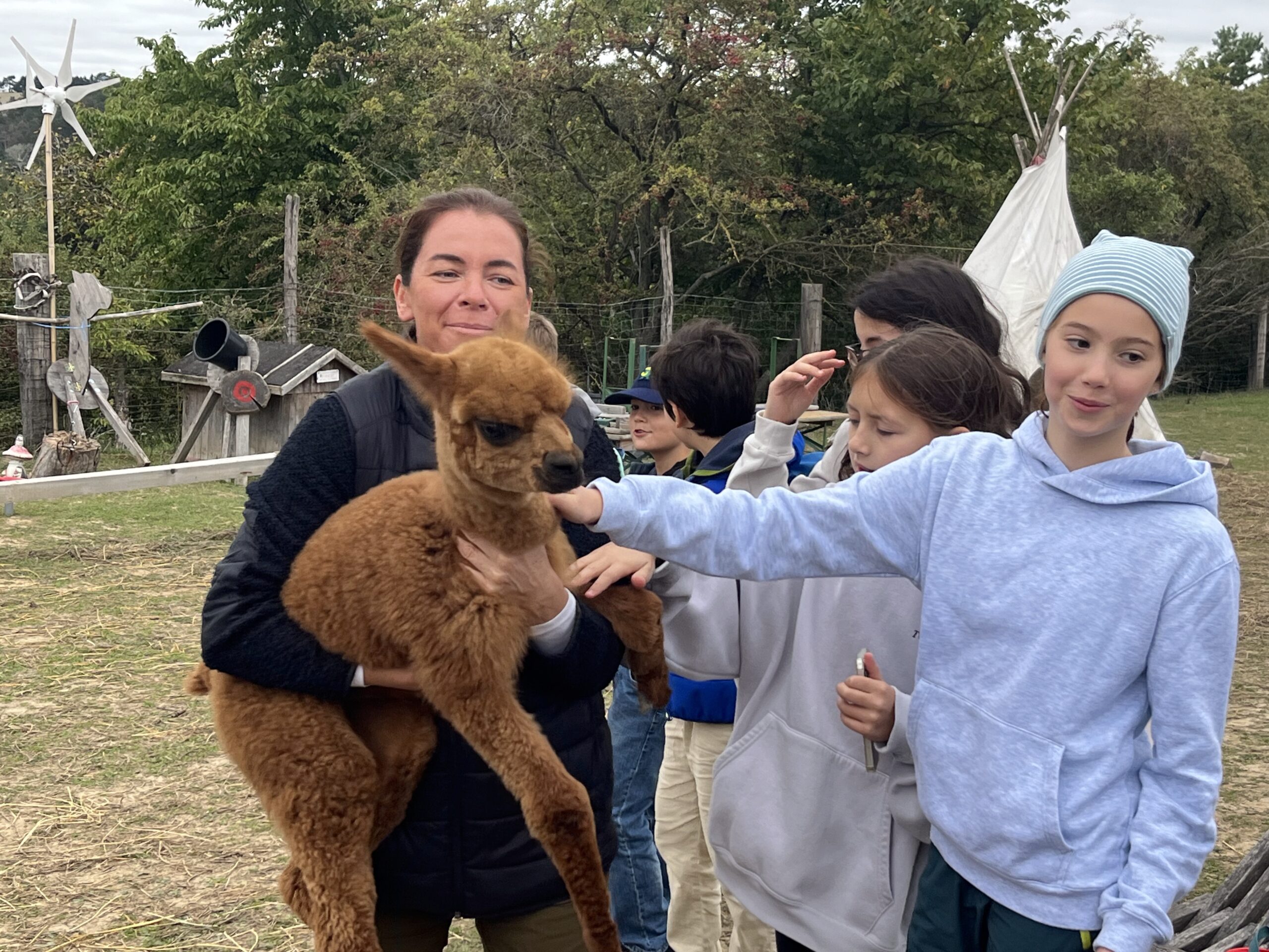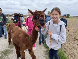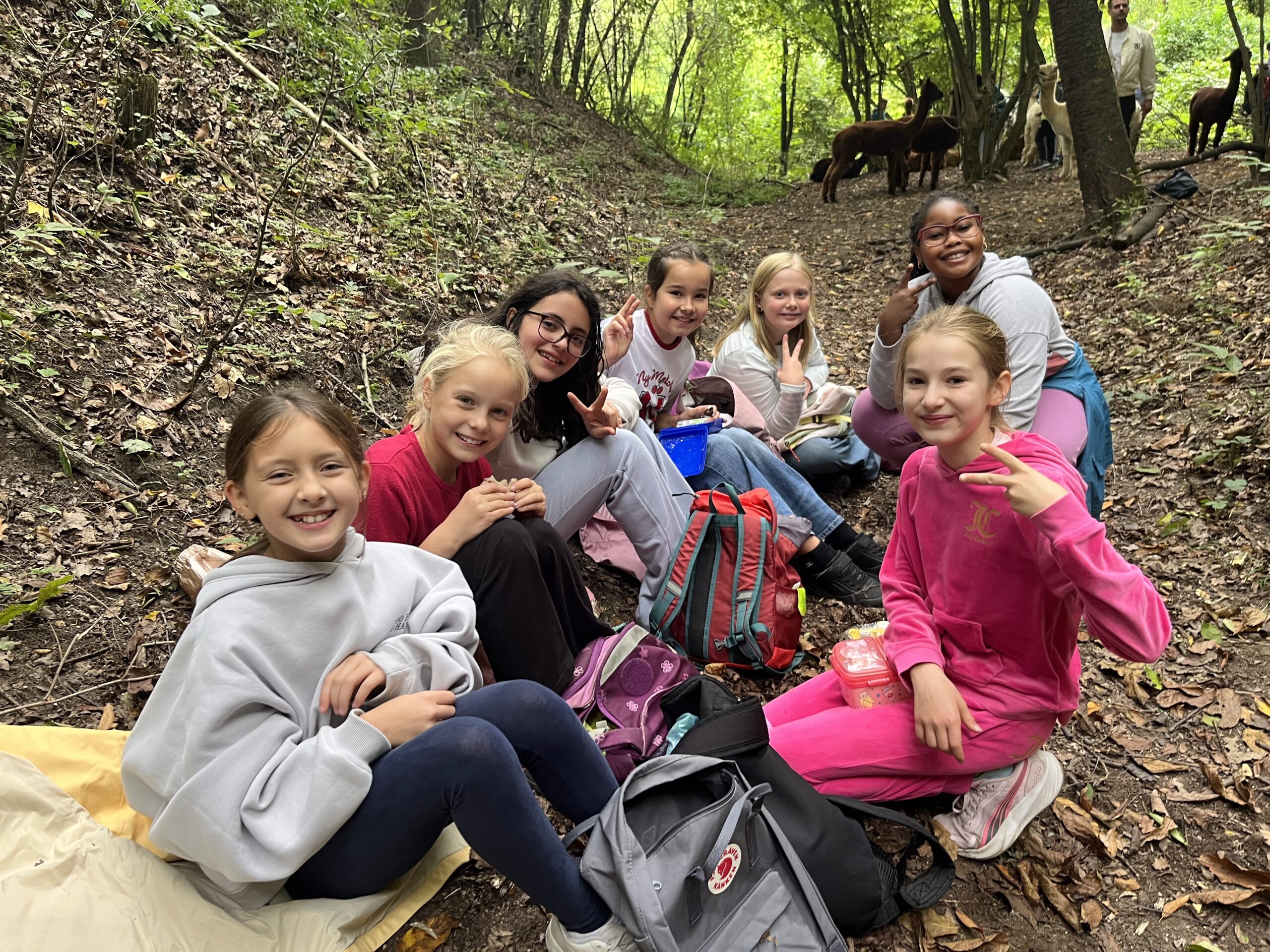 Am 23. September 2025 machten sich die 25 Schüler*innen der 1A in Begleitung von Isabel Valentin und Kathrin Siquans auf nach Riedenthal, um dort mit 15 Alpakas und 2 Lamas durch Wald und Weinberge zu wandern. Bei schönem Herbstwetter und in tierischer Begleitung konnten sich die Kinder untereinander, aber auch ihre neuen Lehrerinnen besser kennenlernen, streichelten Meerschweinchen, kämpften mit störrischen oder blitzschnellen Alpakas und sammelten Steine fürs Begrüßungsfest.