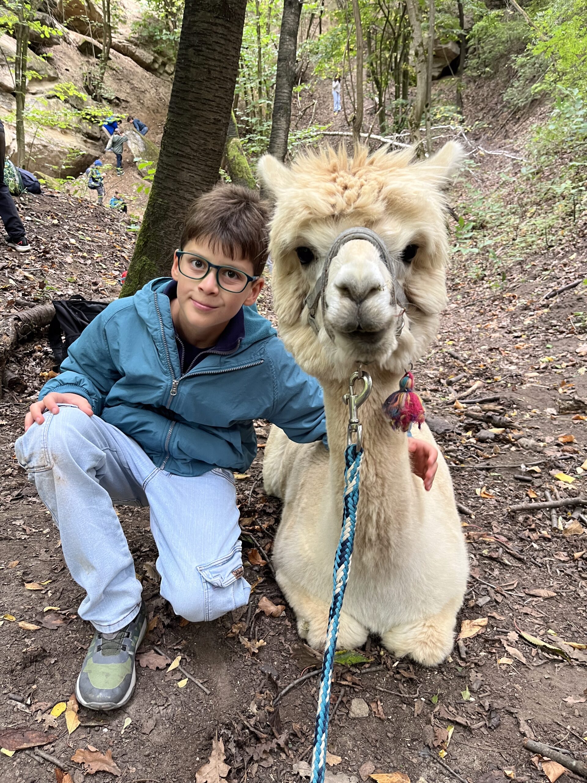 Mateja: Unser Alpaka war etwas störrisch, aber es war sehr cool, dass wir im Wald waren.