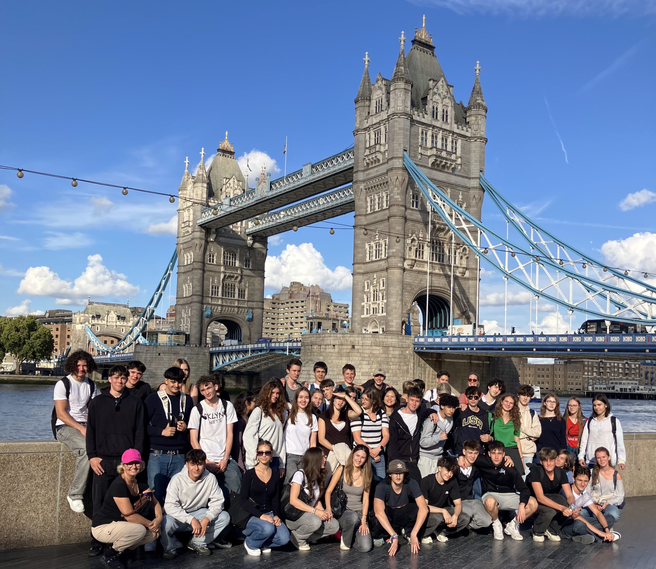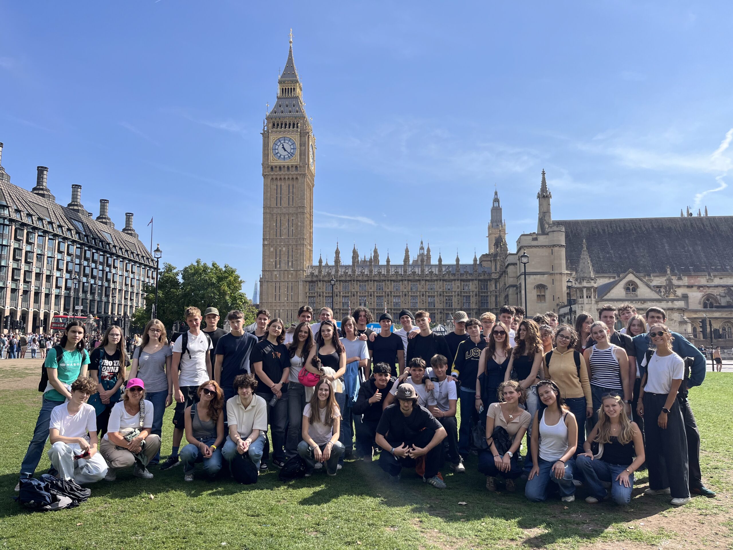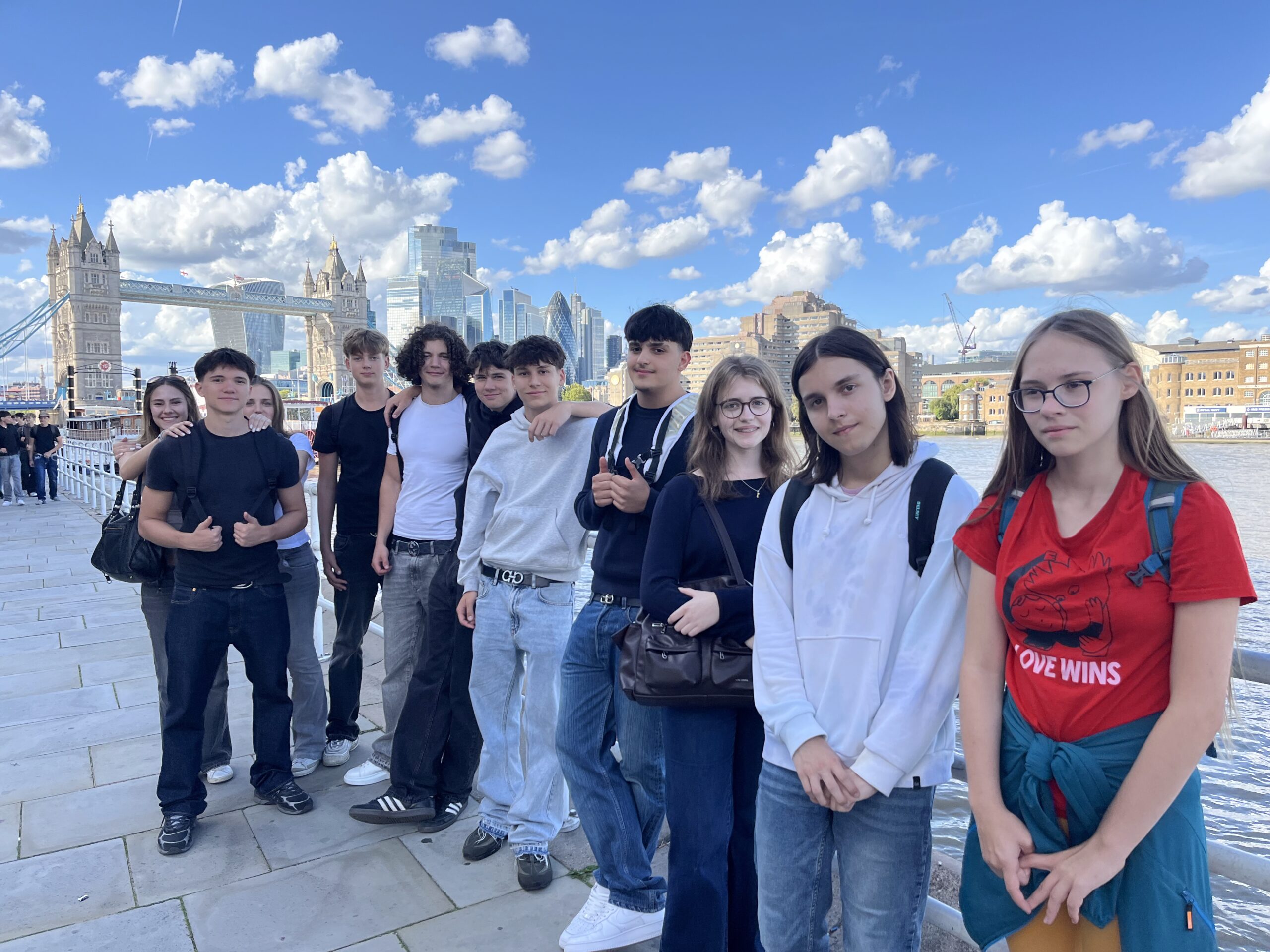 Von 6. bis 13. September 2025 verbrachten 46 Schüler*innen der 7AB in Begleitung von Kathrin Siquans, Ute Eisenhut und Hannah Radakovits eine Intensivsprachwoche in London. Schon am Flug nach London mit British Airways trainierten viele Schüler*innen im intensiven Austausch mit einem jungen Flugbegleiter ihre Sprachkompetenzen und wurden nach der Landung sogar kurz ins Cockpit vorgelassen.