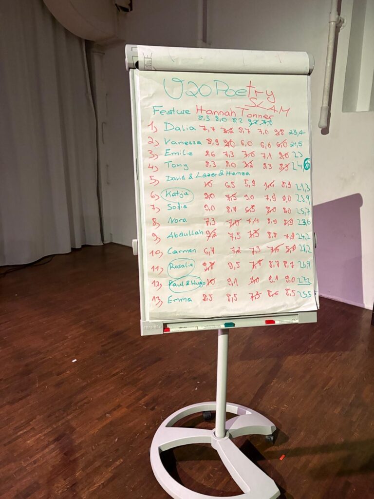“Ich fand vor allem den Workshop davor sehr cool. Die Spiele, die wir gespielt haben, haben Spaß gemacht und wir haben gelernt, wie man einen Text für einen Poetry Slam schreibt. Insgesamt habe ich sehr viel Neues gelernt.” (Theresa Steininger)