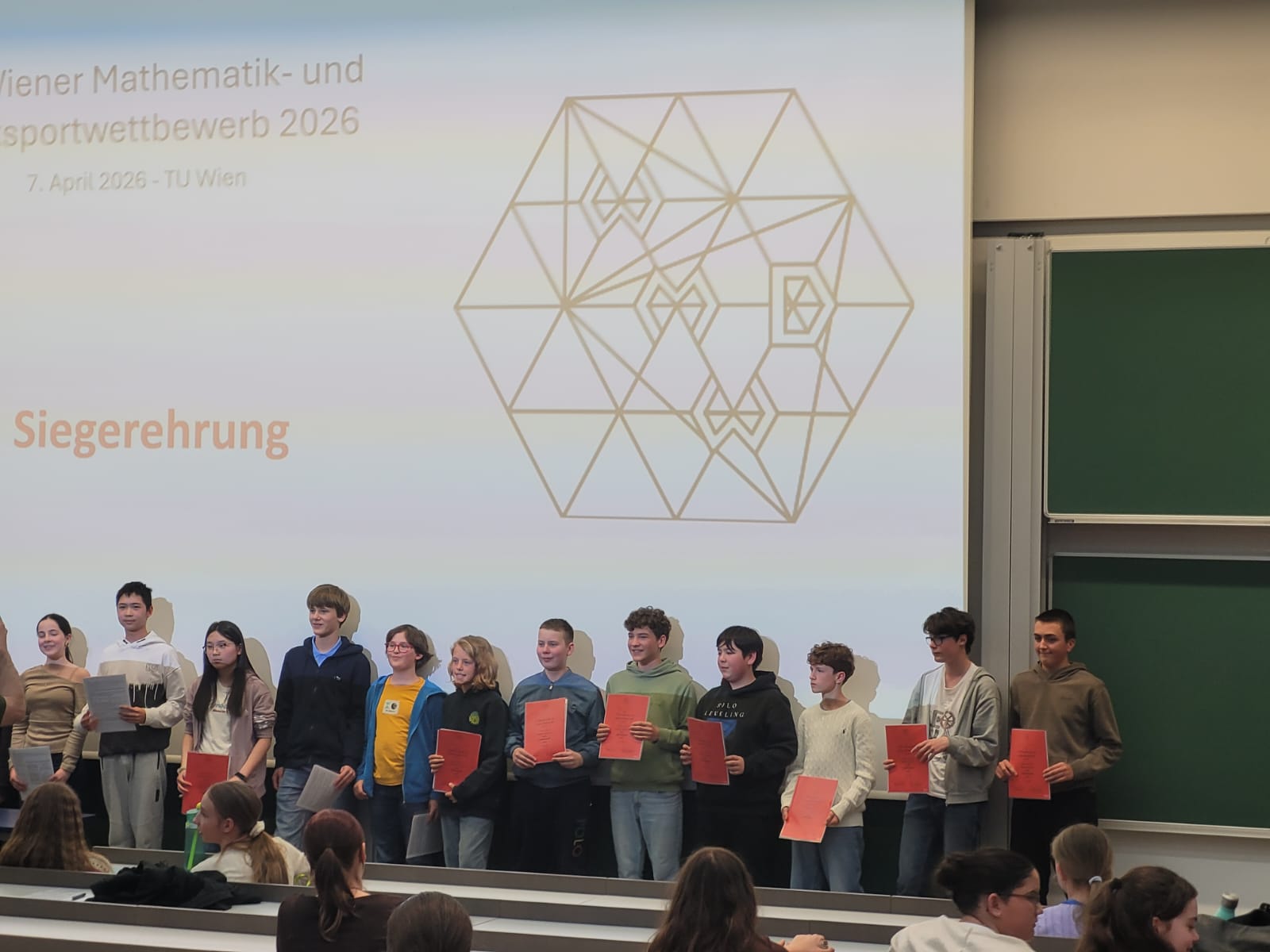 Direkt nach den Osterferien, am Dienstag, den 7.4.2026, haben sich fünf motivierte Jugendliche aus der 3A und der 3C auf den Weg zur TU Wien gemacht, um ihr logisches Denkvermögen auf die Probe zu stellen. Im größten Hörsaal des Standorts in der Getreidegasse haben sich insgesamt 200 Gleichaltrige aus verschiedenen Schulen Wiens versammelt, um an dem Denksportwettbewerb teilzunehmen. Die Aufgaben waren dabei so gestellt, dass logisches Denken im Vordergrund stand.