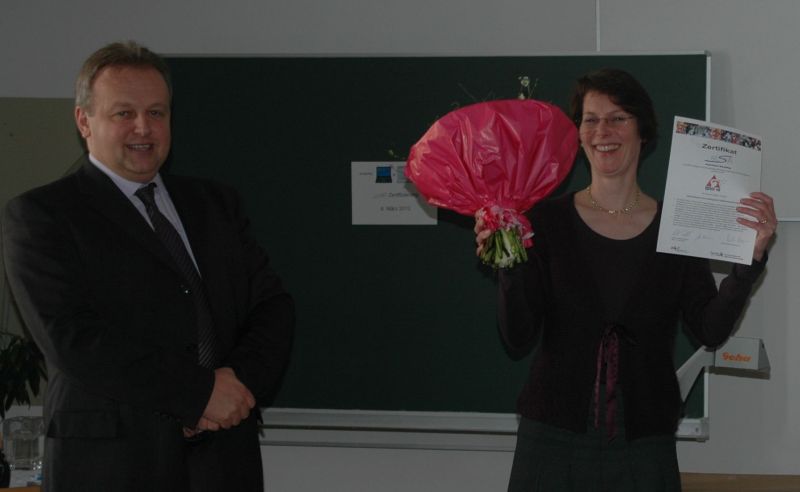 Hier Bilder von der feierlichen Überreichung dieses Zertifikats.
