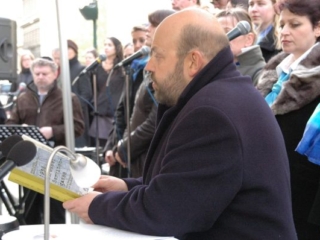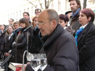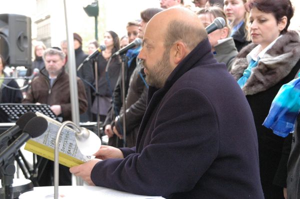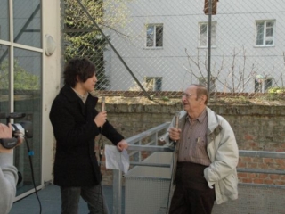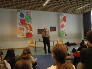 Begonnen hat es mit einem Lied von Prof. Sellner, „Mein Vater wird gesucht“. Dann hat Karl-Heinz Goldschmidt (Charles Kurt) gesprochen. Der heute 82-jährige ging ins BRG 18, als die Nazis einmarschierten. Mit 12 wurde er „von der Schule geschmissen“, weil er Jude war.