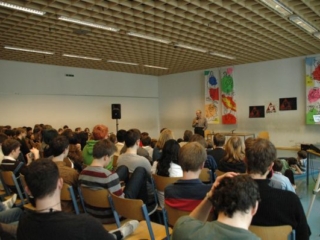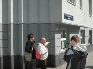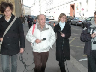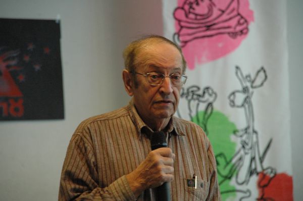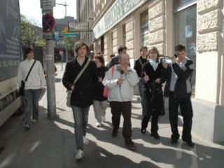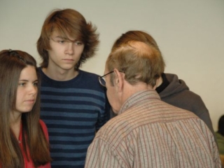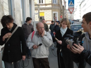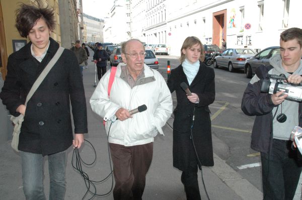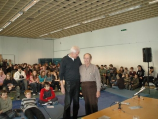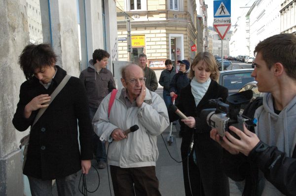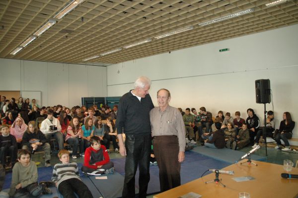 8. April 2008: Kurt Goldschmidt, im März 1938 Schüler der 2B des RG 18, als Zeitzeuge im Gespräch mit SchülerInnen.